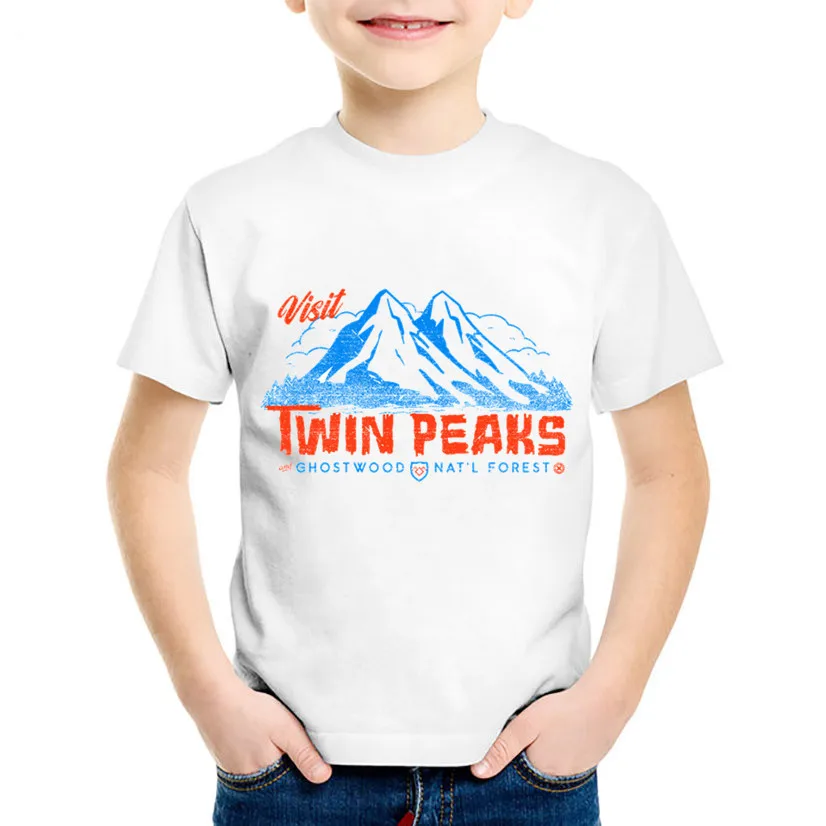 Модный принт посетите Твин Пикс, детские футболки с коротким рукавом Для детей, на лето футболка с короткими рукавами с персонажами из мультфильмов детская футболка для мальчиков из джинсовой ткани 83210