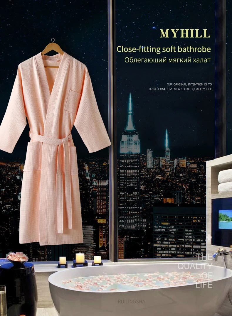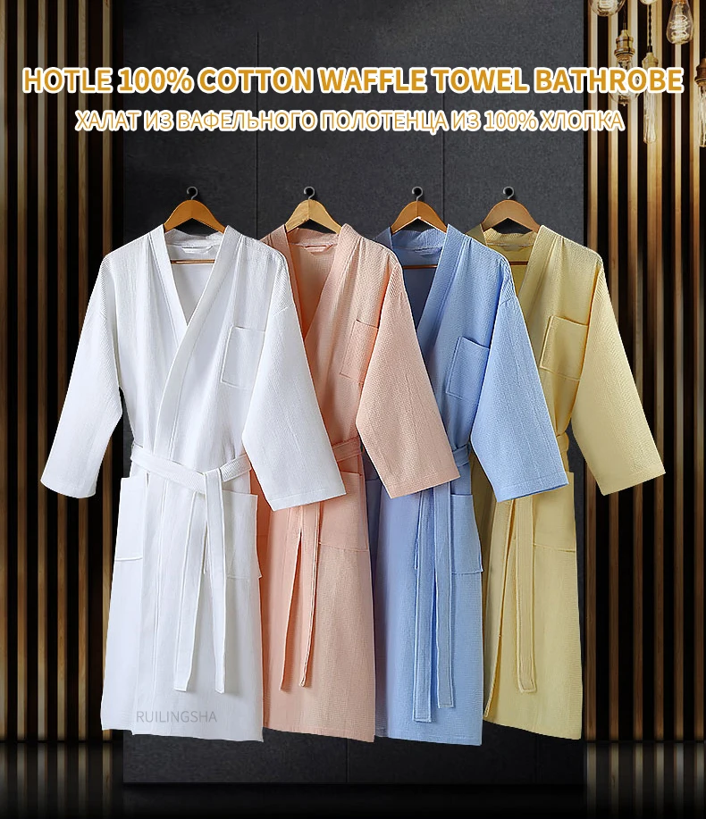 Халат Махровый женский из 100% хлопка, легкий банный халат с вафельным отсасыванием, халат-кимоно, одежда для сна для мужчин и женщин