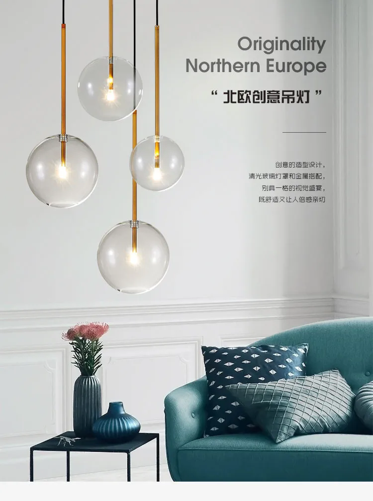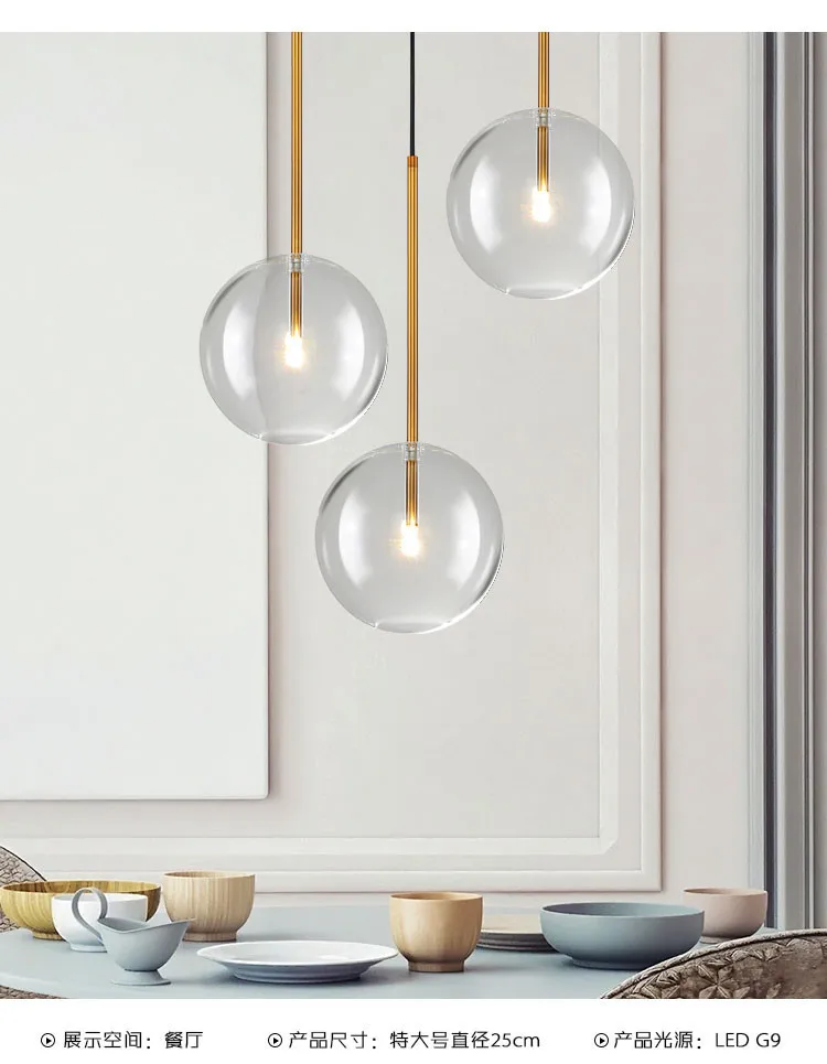 Nordic креативный стеклянный шар светодиодный подвесной светильник для ресторана, кафе, бара, настольная лампа для спальни, подвесной светильник с одной головкой 110 В 220 В