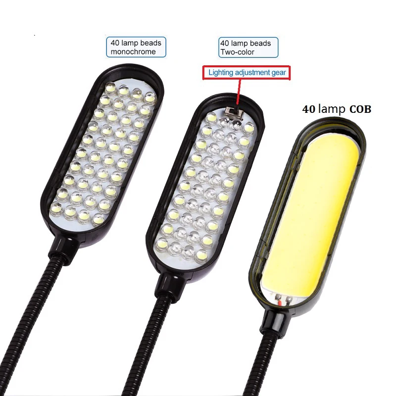 Многофункциональный гибкий рабочий светильник, 40 светодиодов, двухцветныймонохромныйCOB, суперъяркий светильник для швейной машины, для верстака, токарного станка