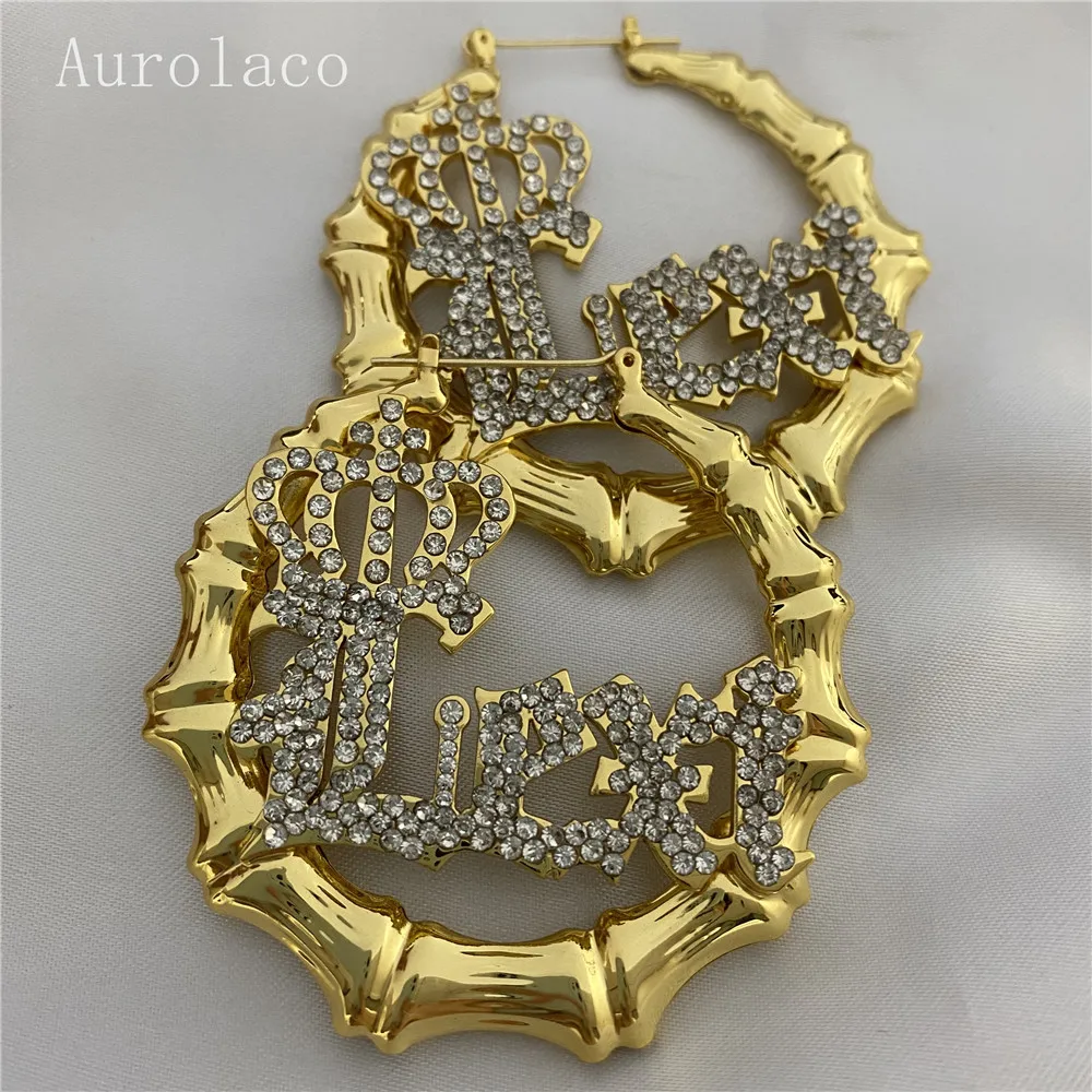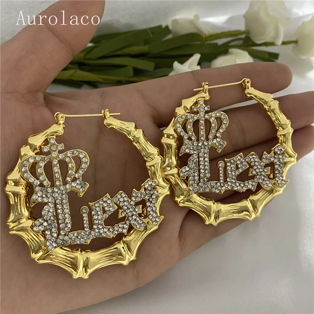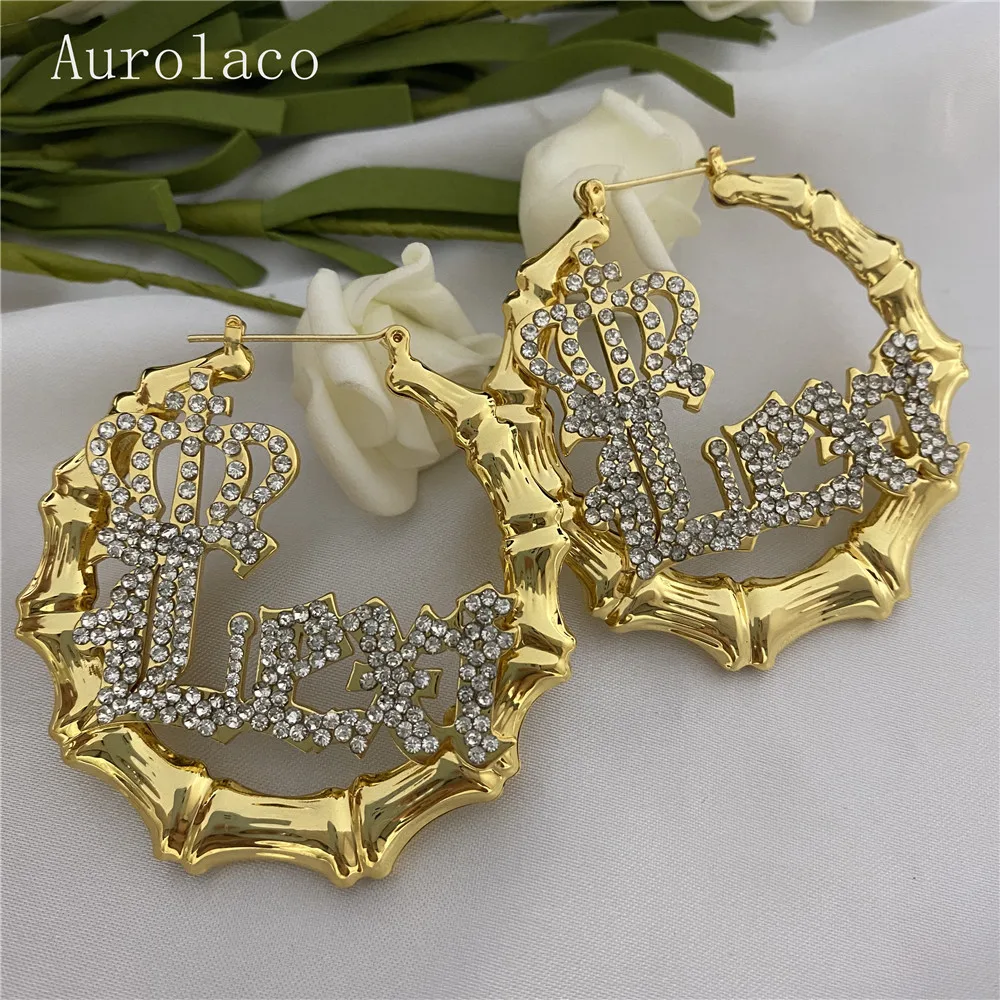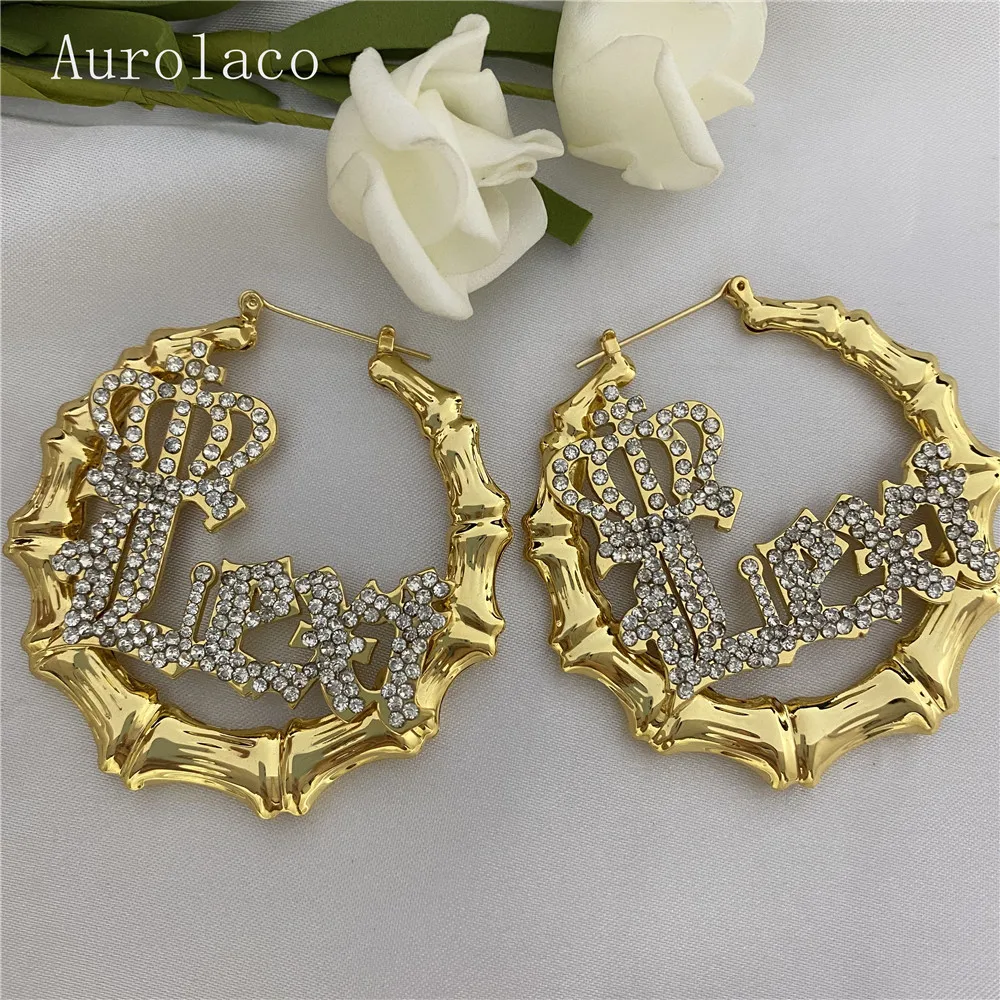 Авторские Бамбуковые серьги AurolaCo, серьги из нержавеющей стали, индивидуальные именные серьги, серьги в стиле хип-хоп, серьги для женщин, подарок