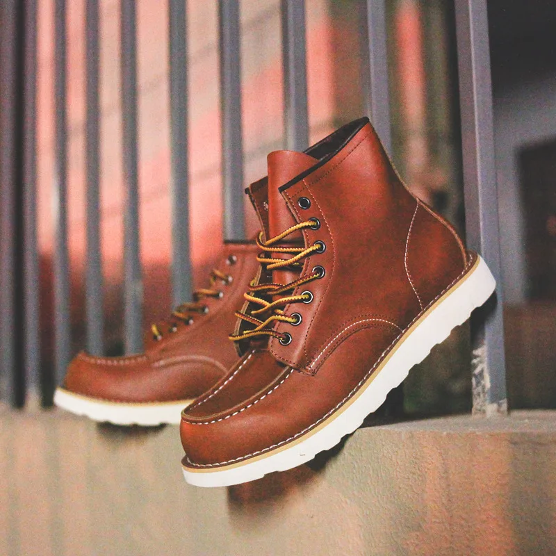 Зимние винтажные рабочие красные мужские мотоциклетные ботинки, кач...