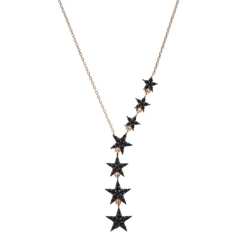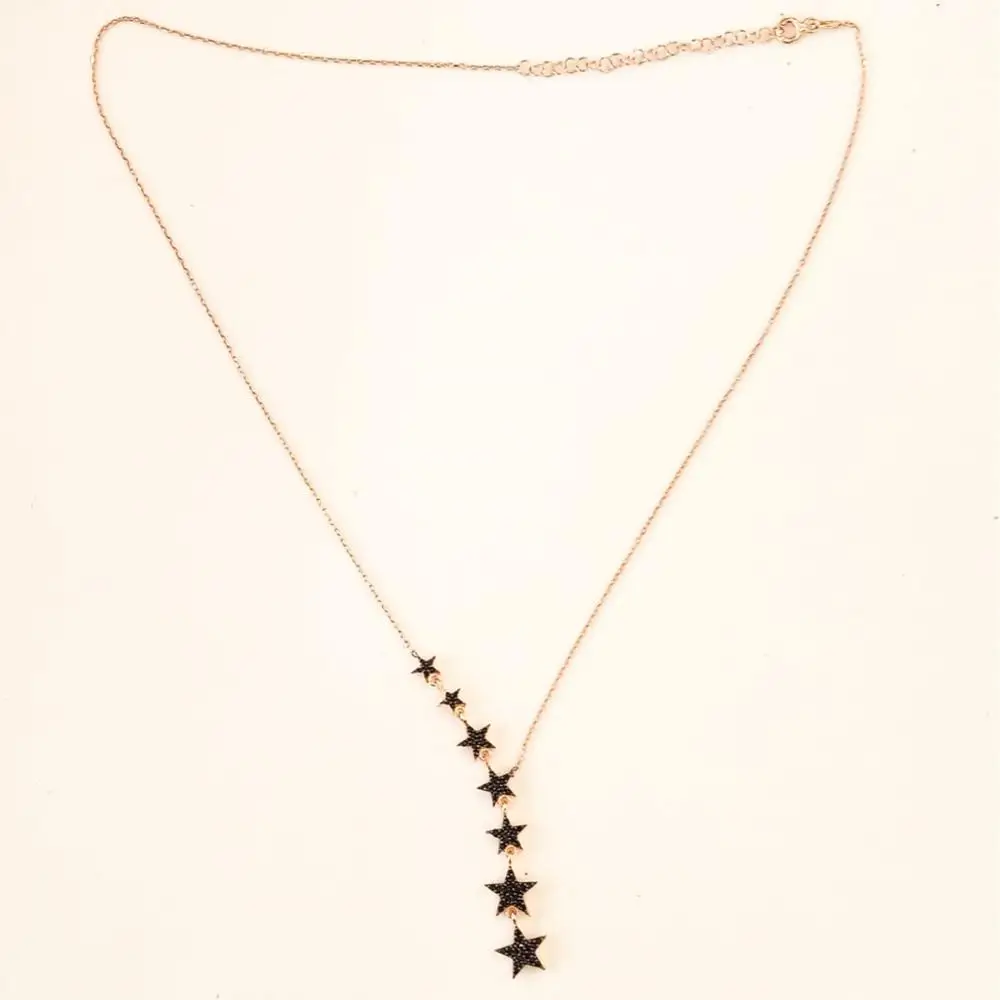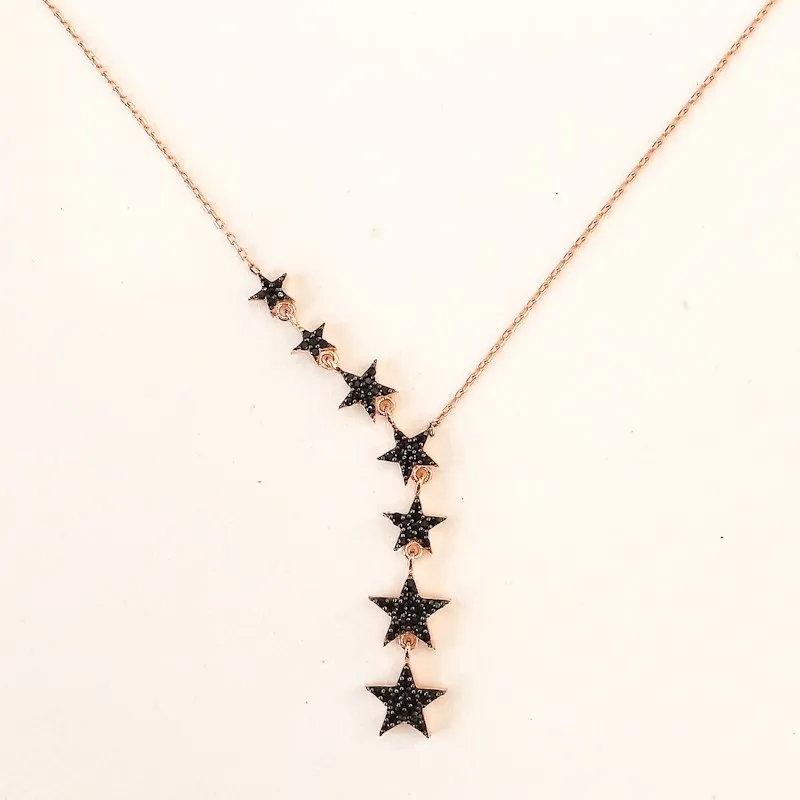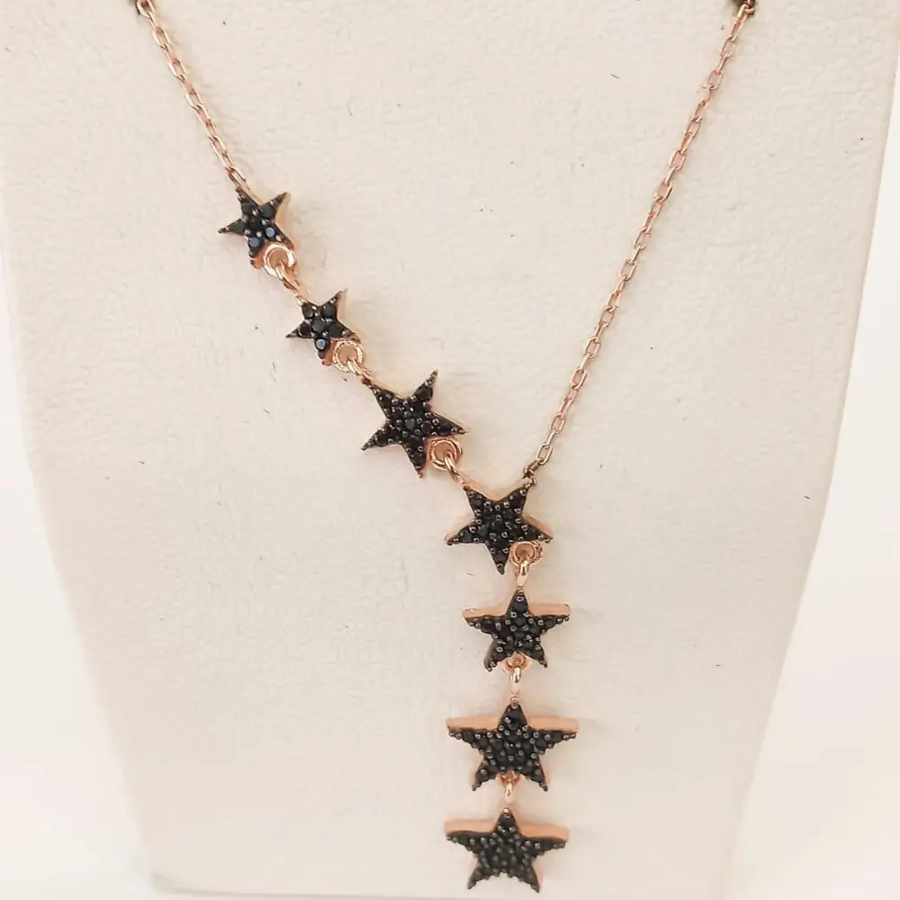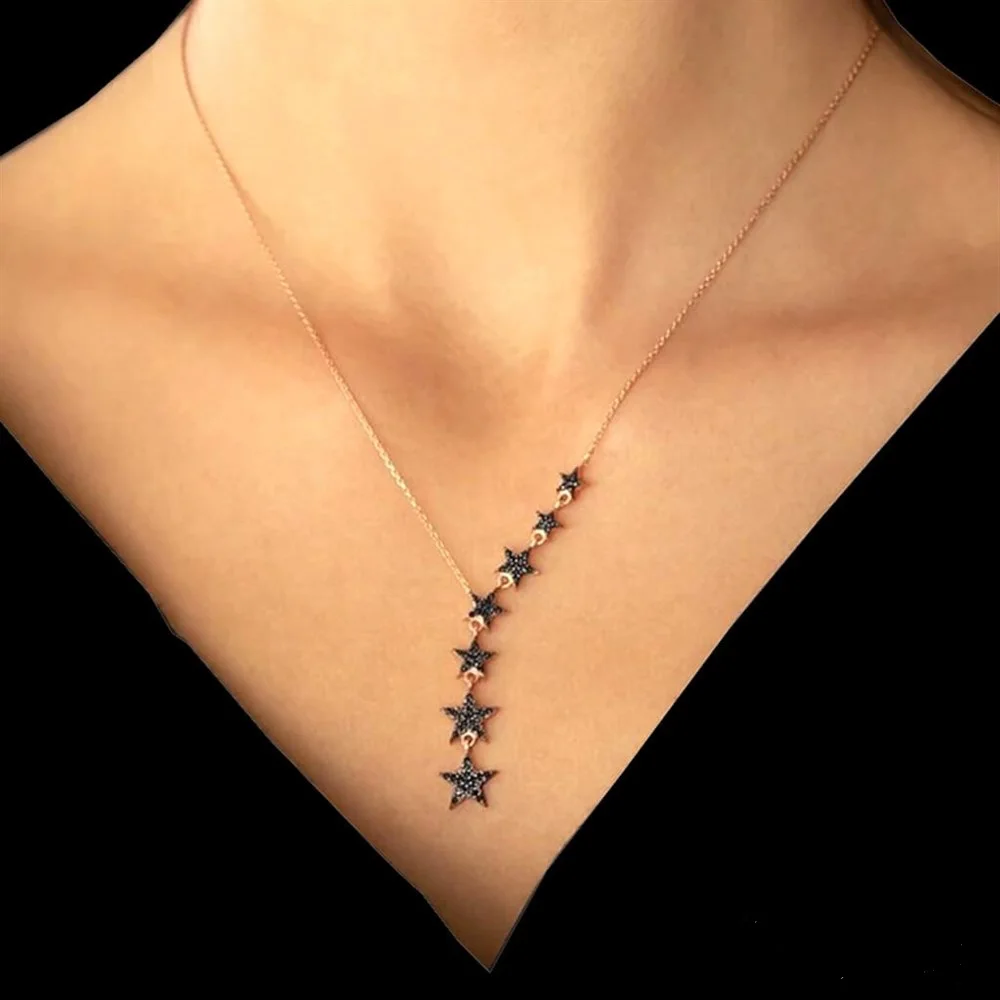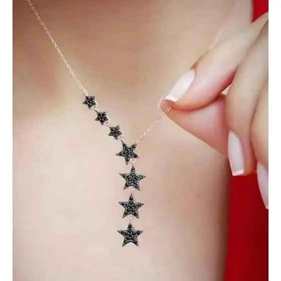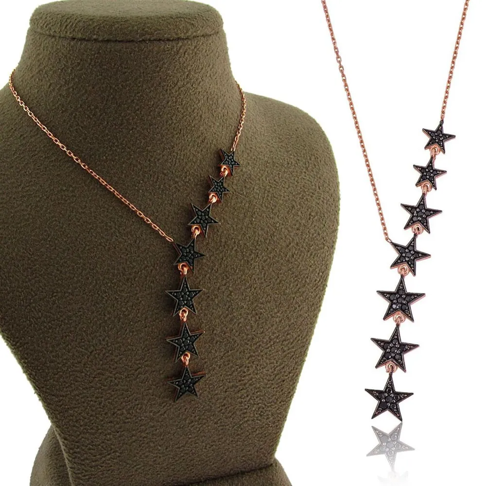 Ожерелье женское из серебра 925 пробы с отсортированными 7 звездами и черными камнями, изящное маленькое изящное повседневное ювелирное изделие, простой подарок на день рождения