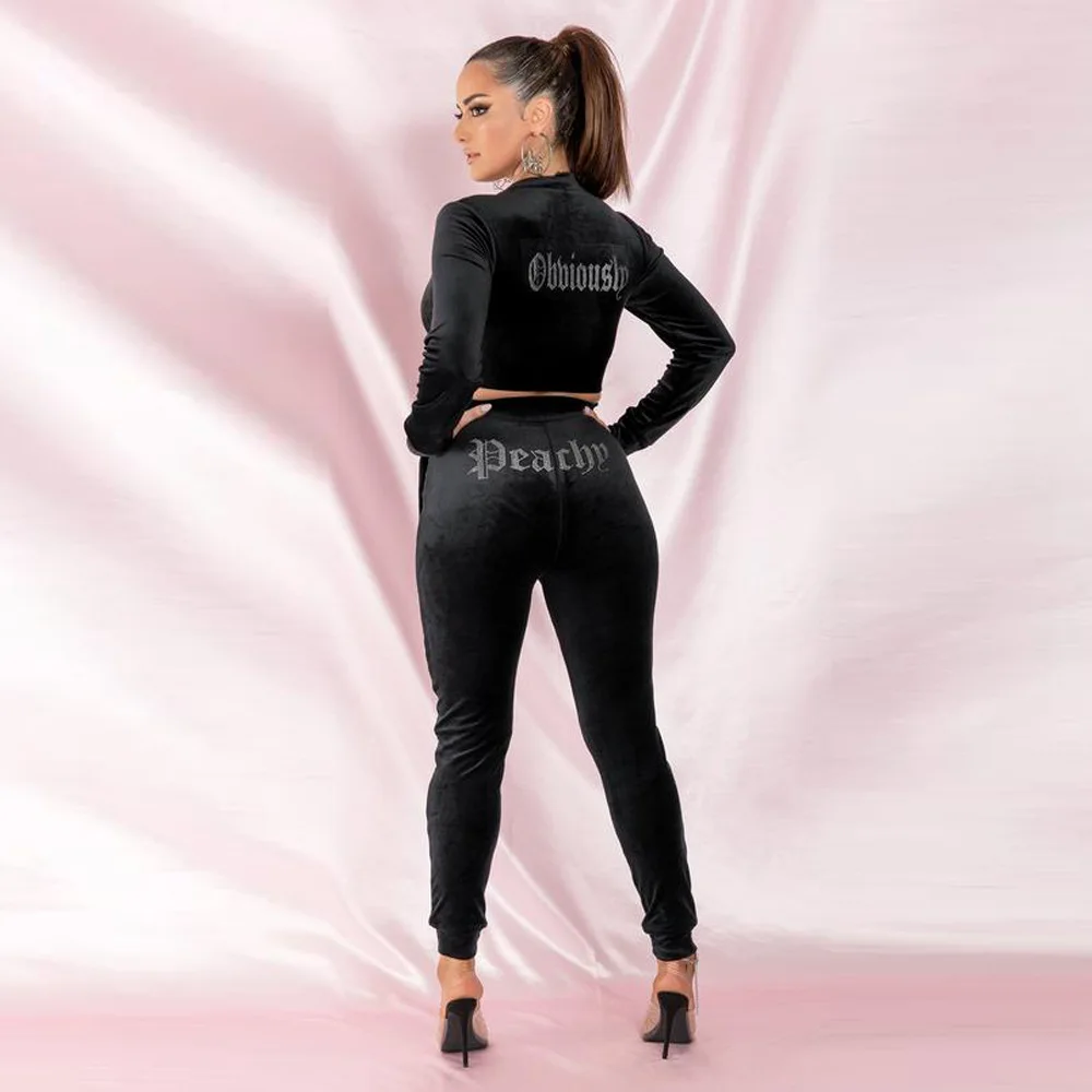 Женский комплект из 2 предметов, стразы с надписями, тонкие бархатн...