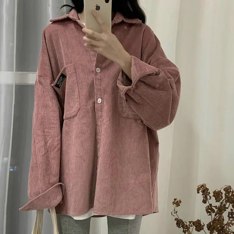 Блузка женская Вельветовая универсальная, однотонная свободная простая шикарная рубашка в Корейском стиле, уличная одежда в стиле Харадзюку, весна