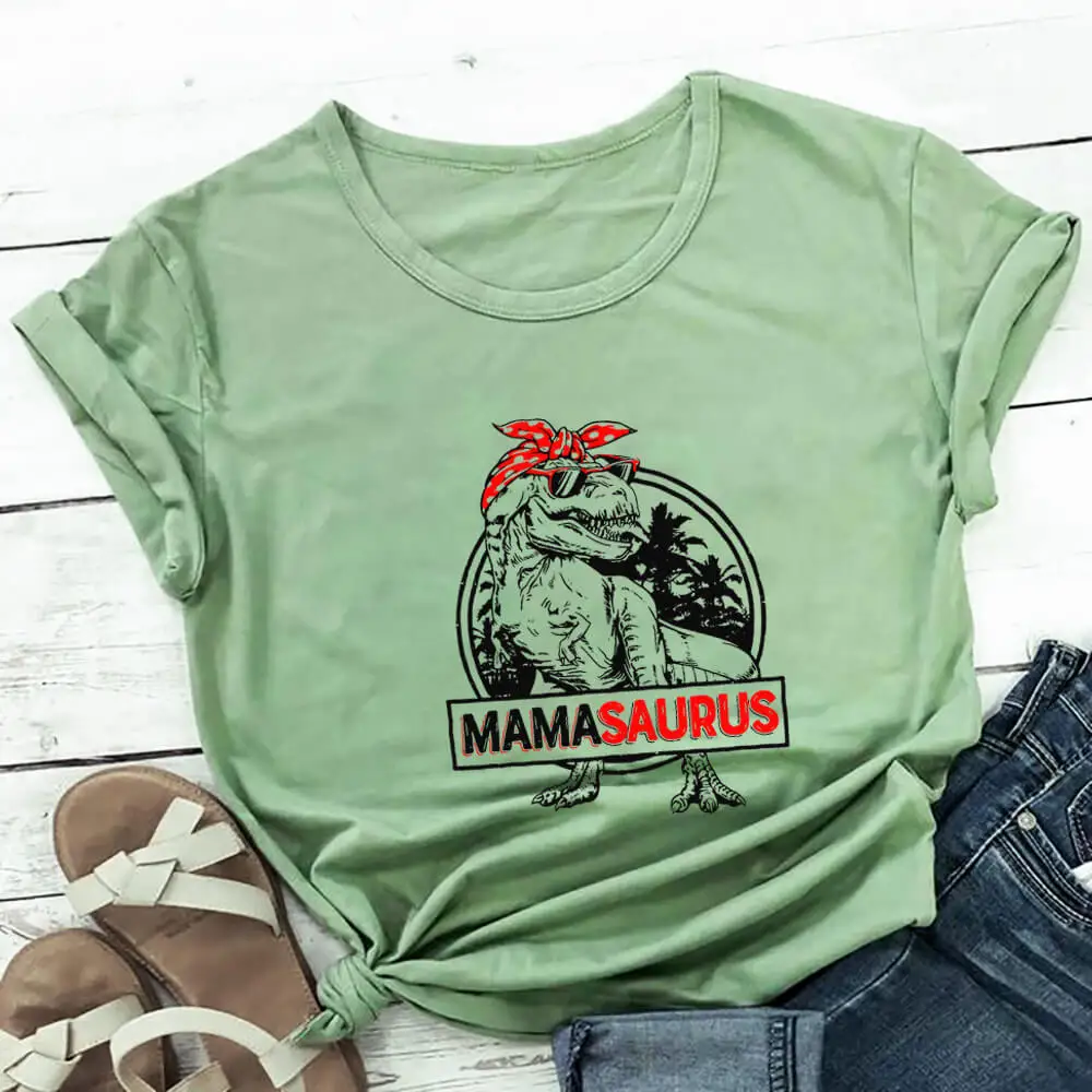 Mamasaurus, 100% хлопок, цветная женская футболка с принтом, забавный Повседневный Топ с круглым вырезом и короткими рукавами, футболка для мамы, подарок на день матери, Рождественский подарок