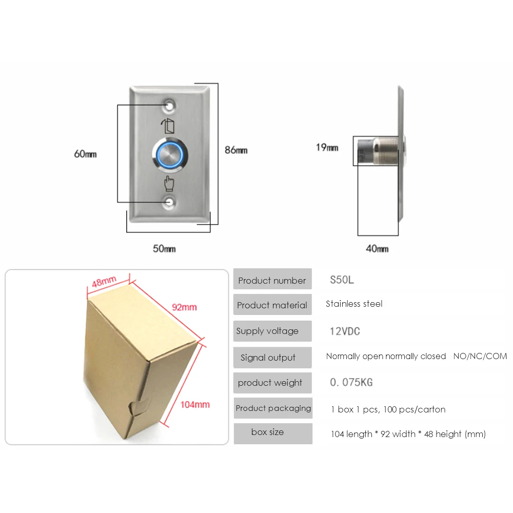 Кнопка выхода подсветки из нержавеющей стали открывалка для двери открывалка для системы контроля доступа