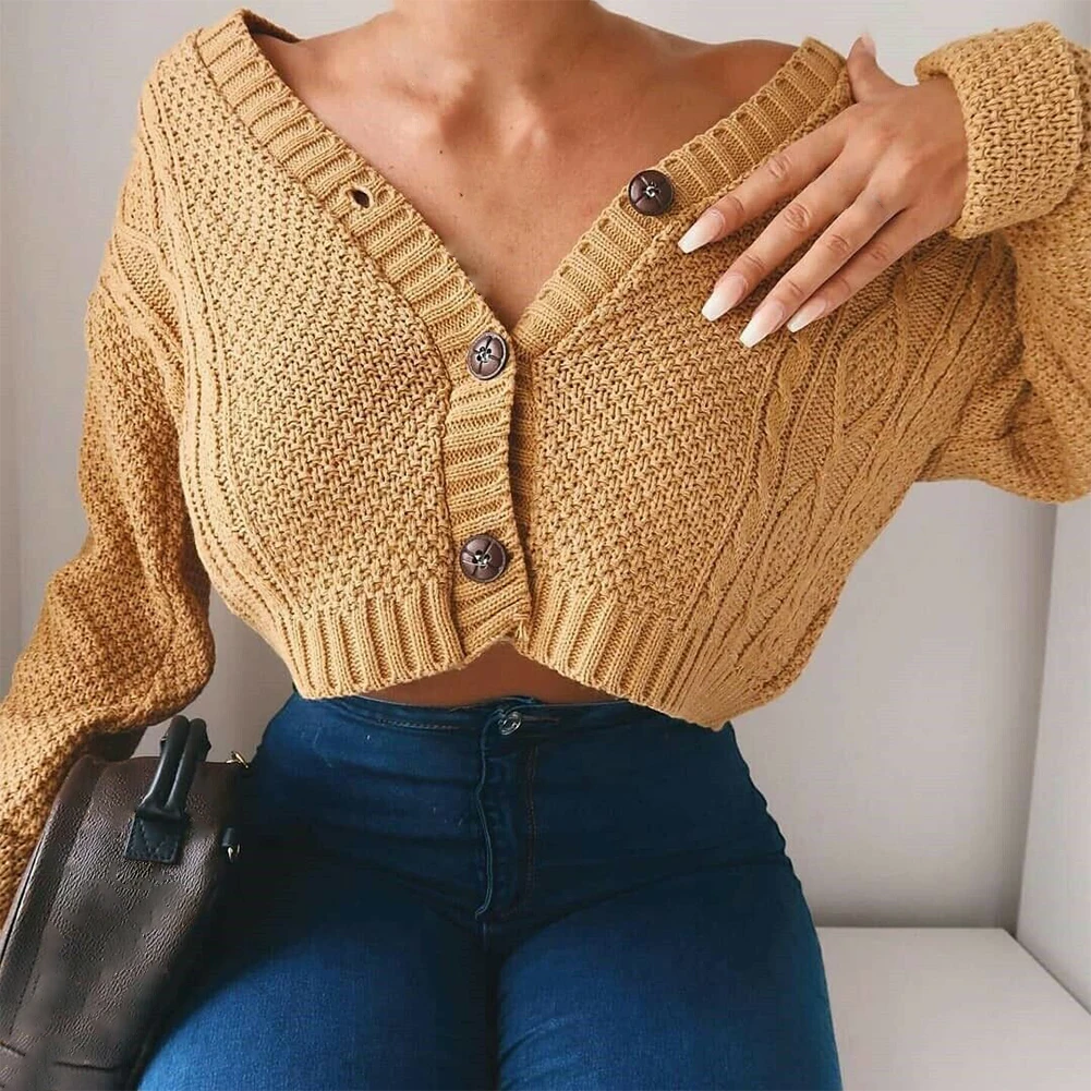 Женская трикотажная короткая куртка, Свободный укороченный свитер, кардиган с пуговицами, свитера, топы, повседневная куртка, 2020