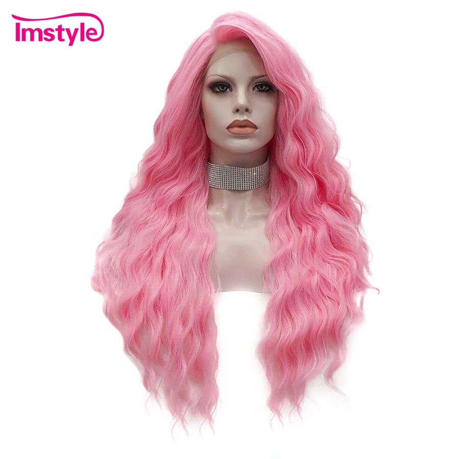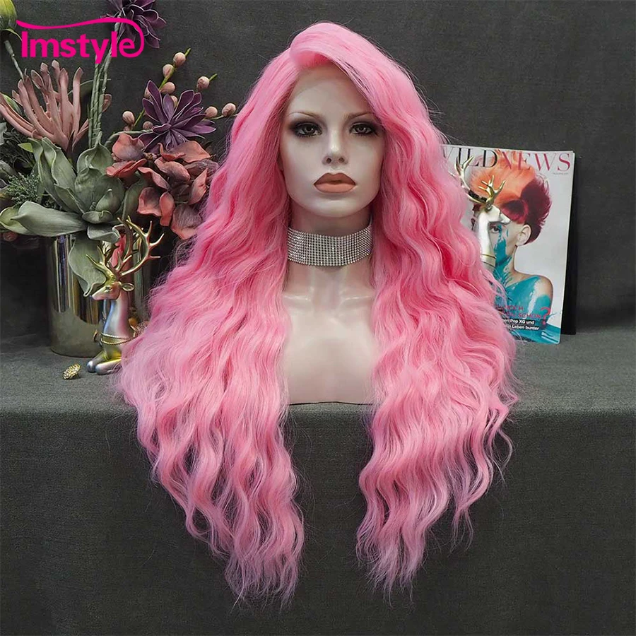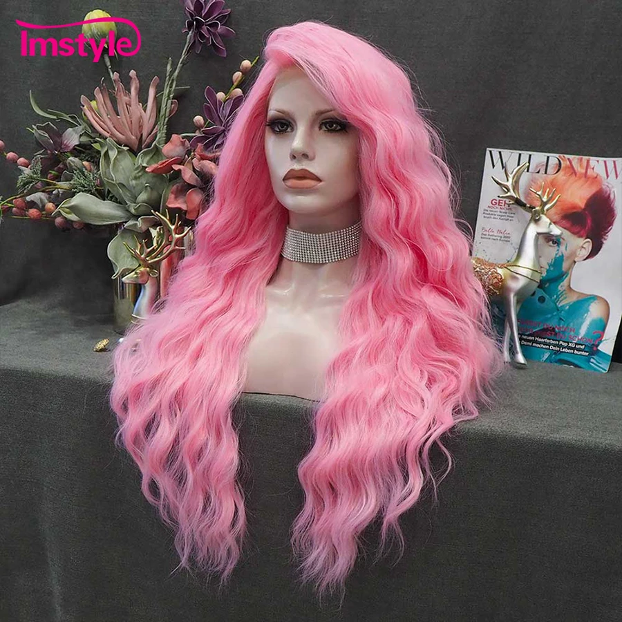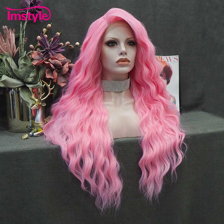 Парик Imstyle Женский, из розового термостойкого волокна, глубокая волна