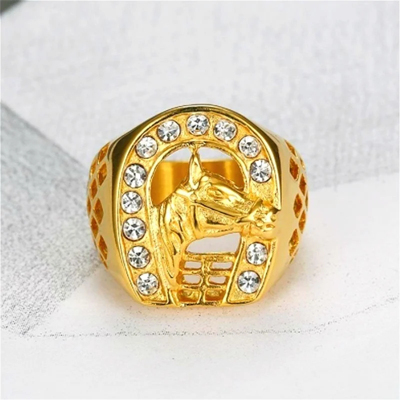Модные циркониевые инкрустированные золотые лошади мужские обручаль...