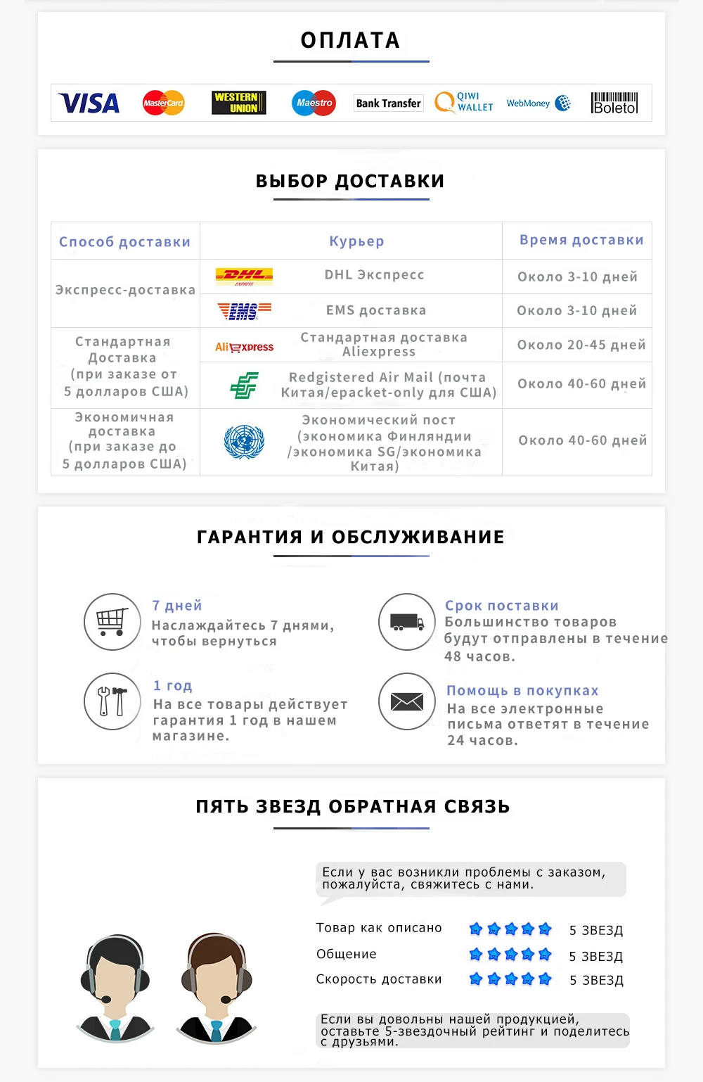 Бесплатная доставка в Российскую Федерацию (способ доставки выбирает только покупатель)