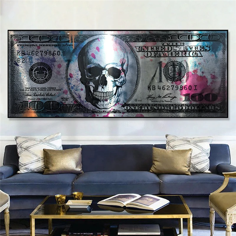 Доллар череп Современный художественный холст плакат и принты Творческий денежный ящик 100 долларов изображение настенный Декор картина для Liviung комнаты