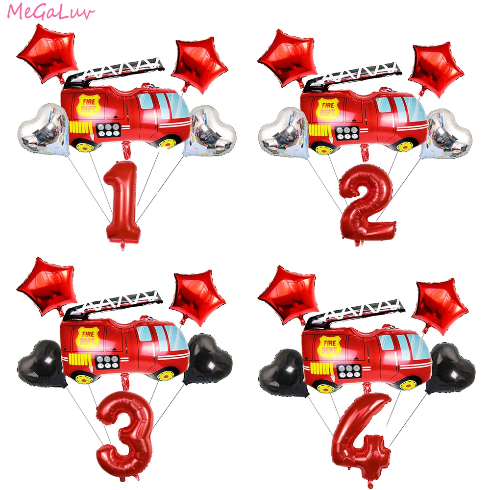 Воздушные шары пожарной машины с цифрами, одноразовая посуда пожарного Сэма, бумажная тарелка для дня рождения, украшение для чашек, товары для пожарной вечеринки