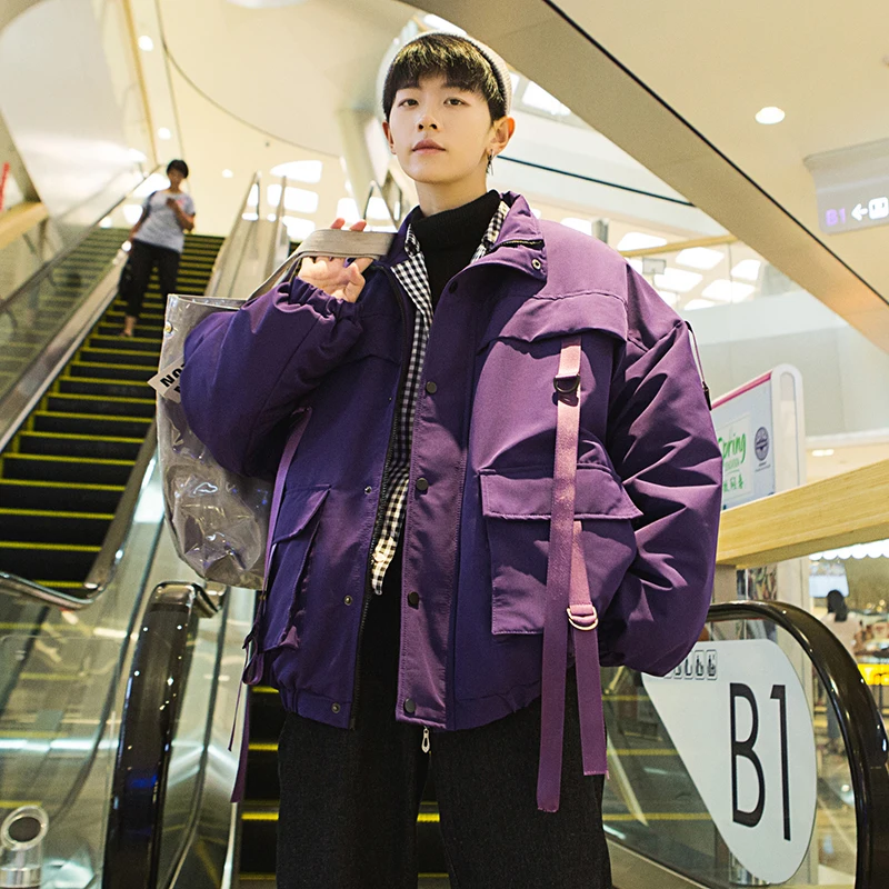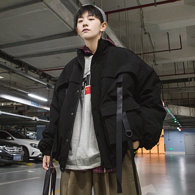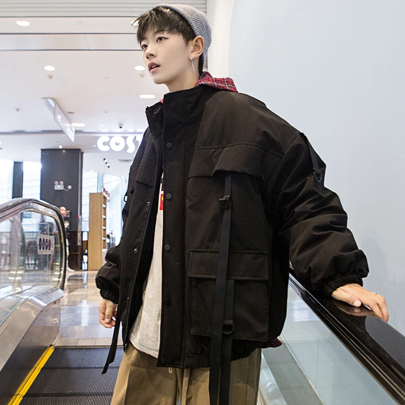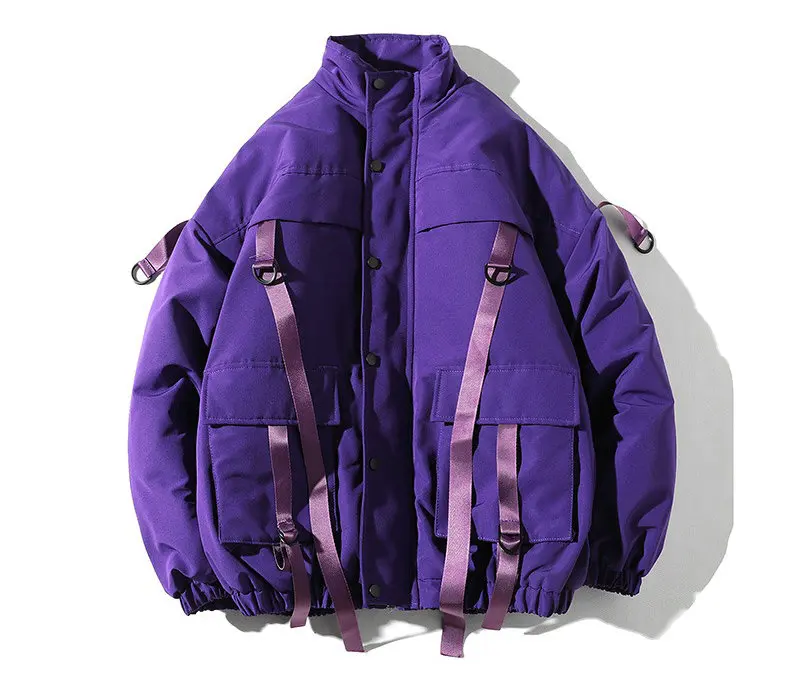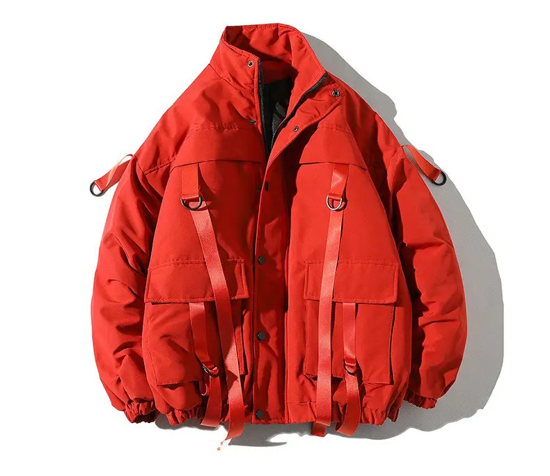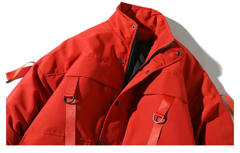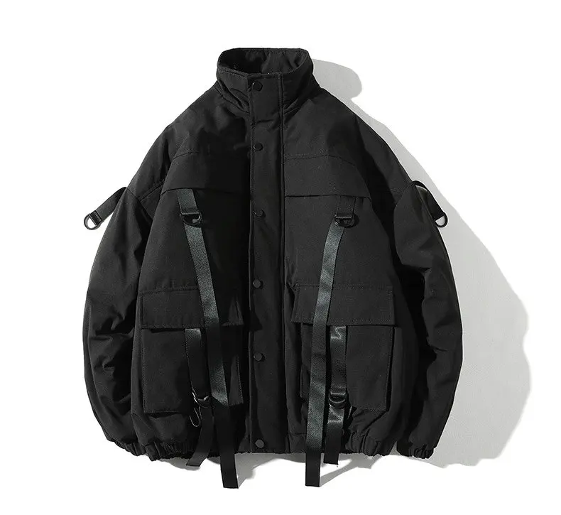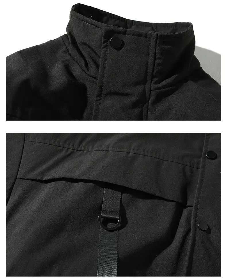 Куртка мужская зимняя с лентами и карманами, толстая уличная одежда в стиле хип-хоп, парка, повседневная с подкладкой, размеры сша