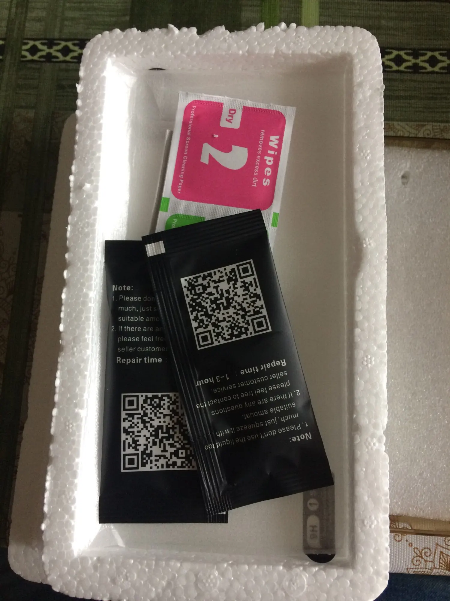 Стекло приехало целым. До Харькова за 15 дней. Очень приятно что в комплекте помимо тряпочек ещё и ёмкость с какой-то жидкостью которая приклеивает стекло в тех местах где оно плохо село.
