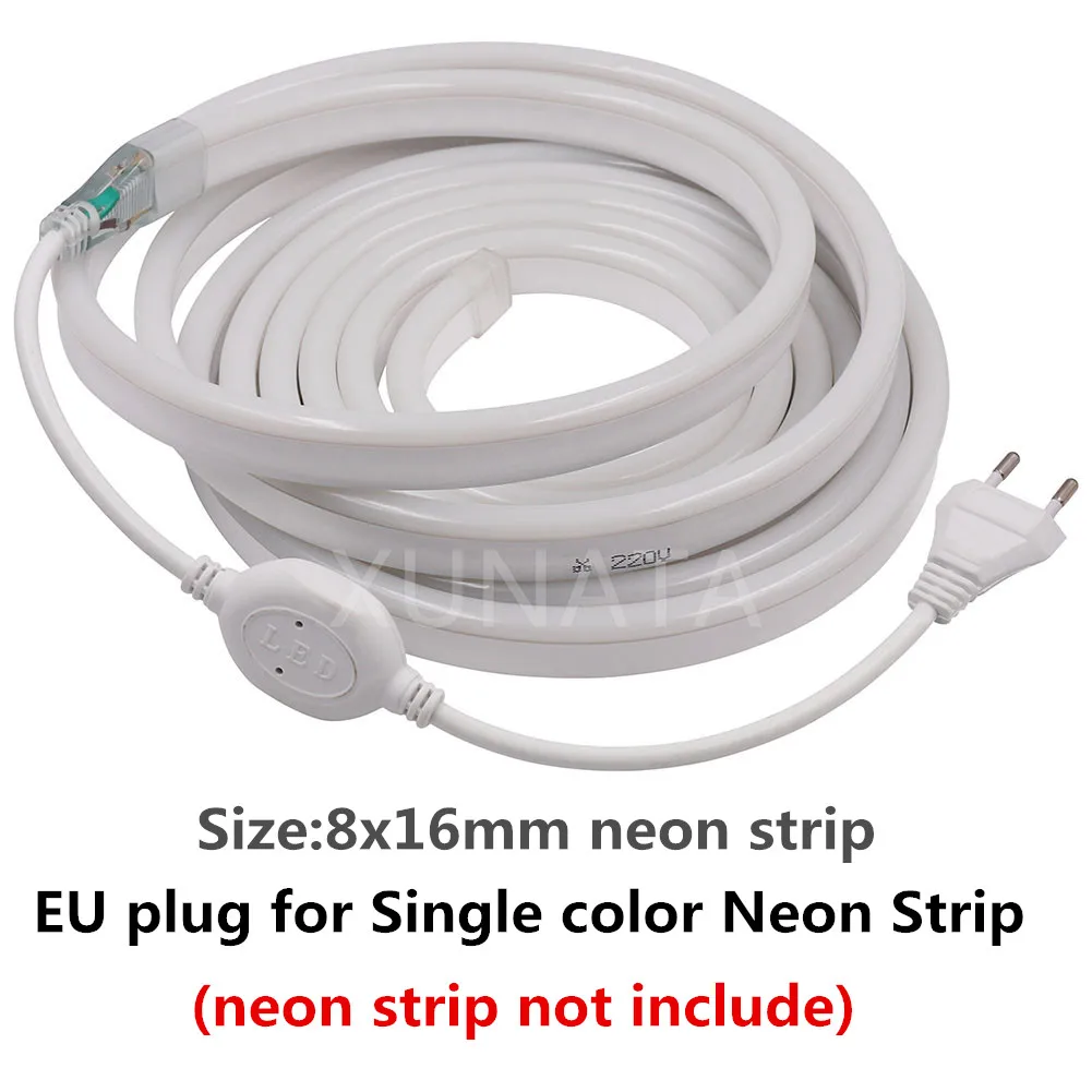 Штепсельная Вилка европейского стандарта 220 В, водонепроницаемый светодиодный драйвер для одноцветной неоновой светодиодной ленты 220 В, 8 х16 мм