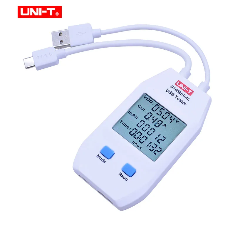 Тестер USB второго поколения серии UT658-это новый тип инструмента для проверки качества зарядных устройств, мобильных источников питания, линий передачи данных и других зарядных устройств для продуктов 3C. Протестировано выходное напряжение, выходной ток, выходная мощность, емкость, эквивалентное сопротивление петли и напряжение линии передачи данных USB для зарядного устройства 3C. Этот продукт имеет высокую точность, надежность, стабильность, малый размер, удобное и гибкое использование, и может быть широко использован в заводской проверке, цифровых энтузиастов и инженеров.