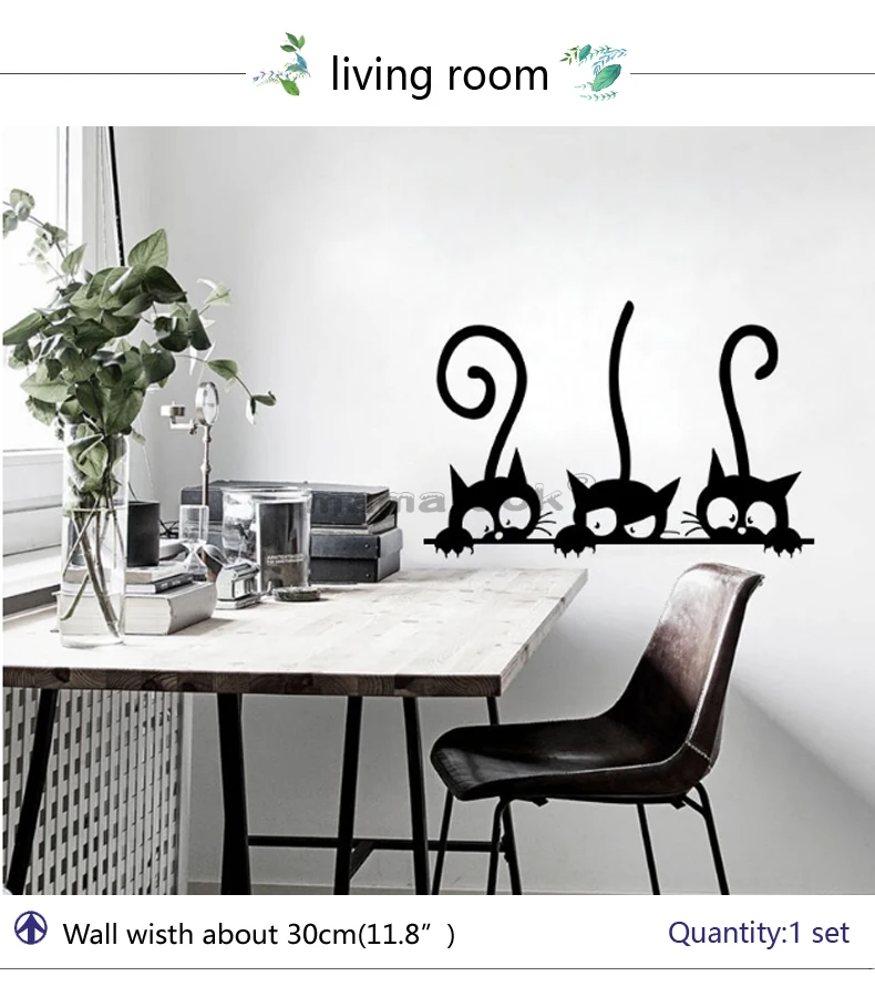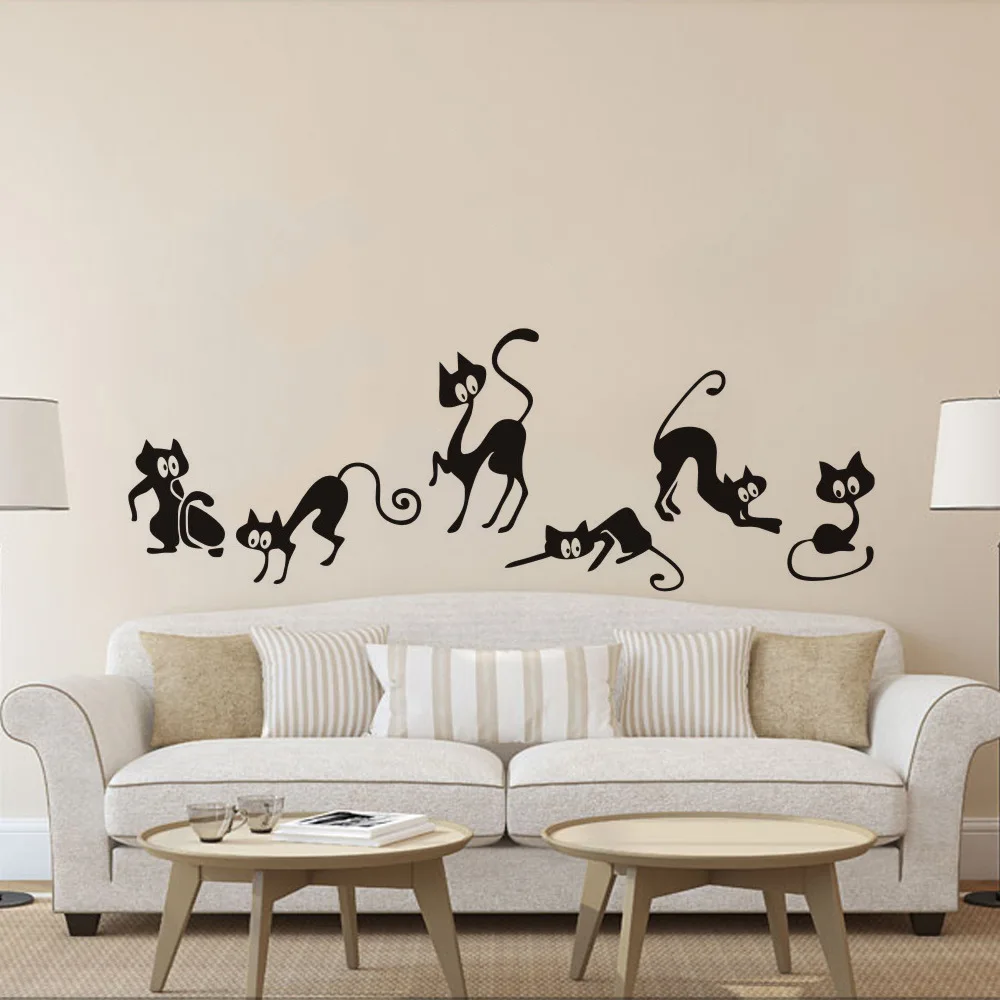 Творческие ленивые черные стикер на стену с кошкой украшения для дома и спальни настенные наклейки художественные обои амималы виниловые наклейки