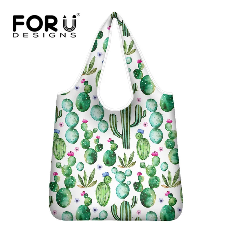 Женские сумки для покупок FORUDESIHNS с рисунком кактуса, продуктовая сумка, Экологически чистая Портативная сумка через плечо, Удобная дорожная сумка-тоут