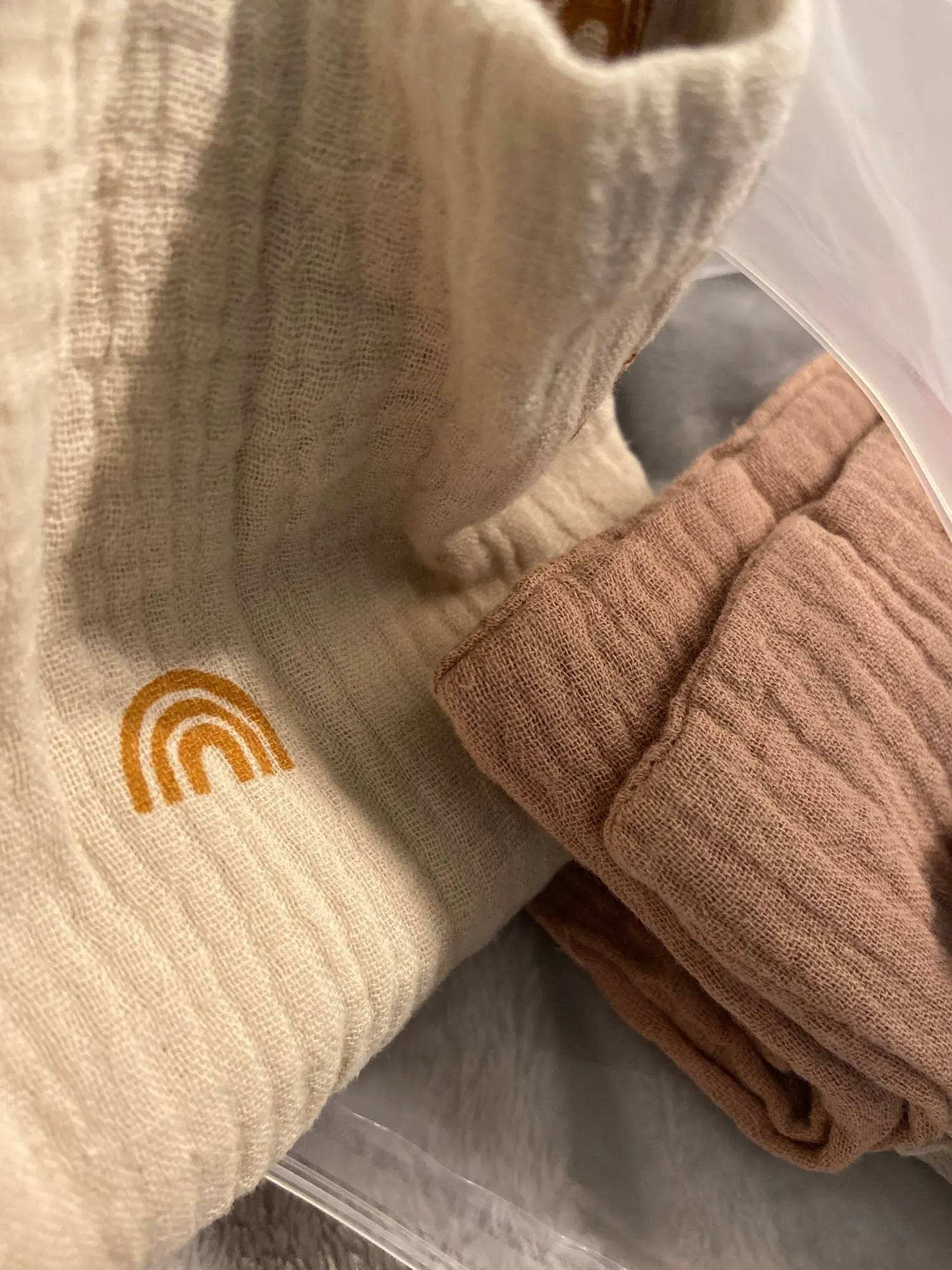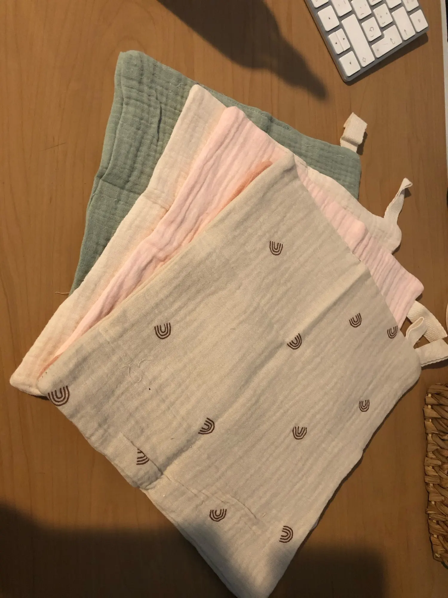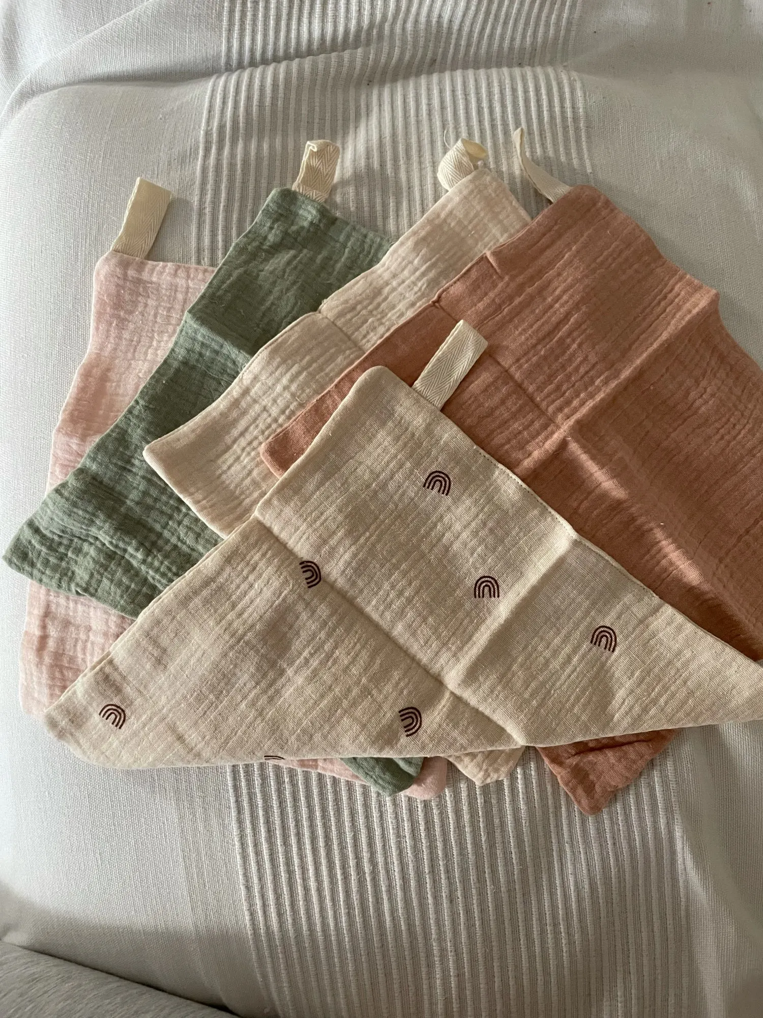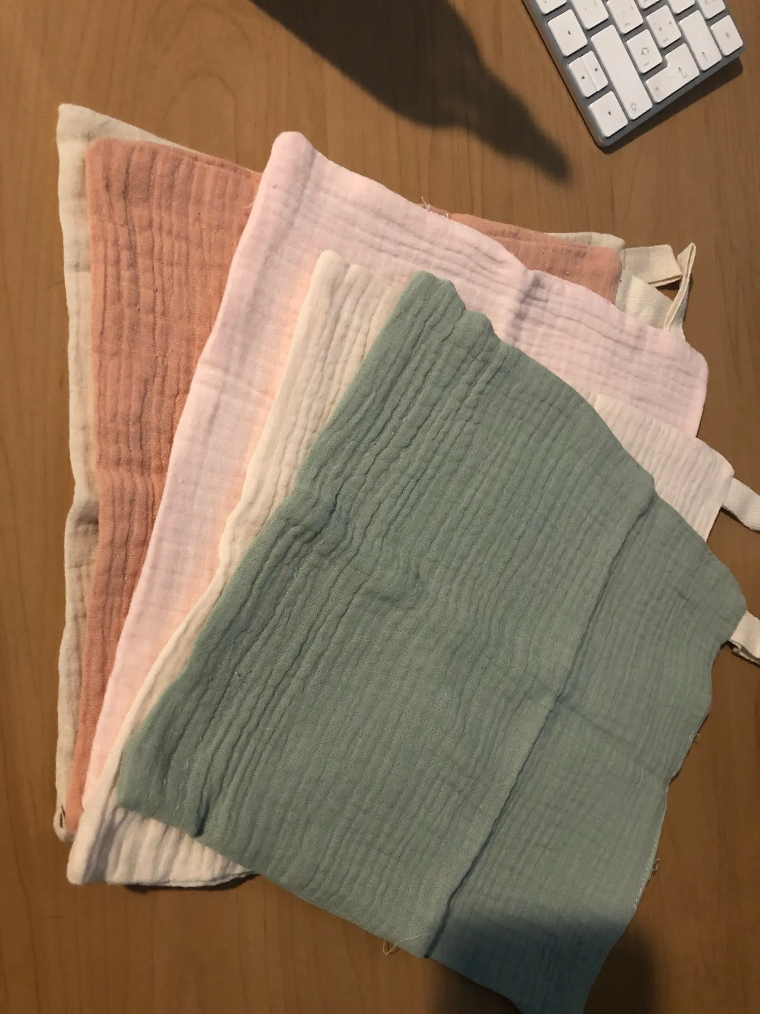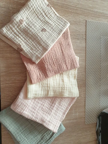 Хорошие муслины, чтобы поддержать голову ребенка, чистить царапины... Маленькая, но Двойная Ткань и Мут толстовки. Nice colors.