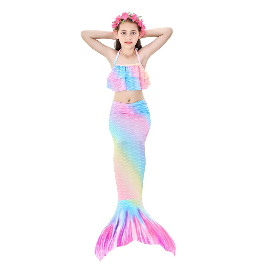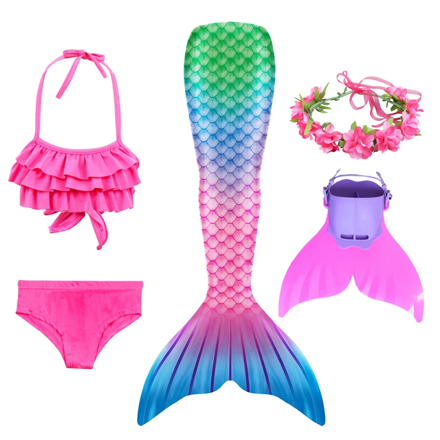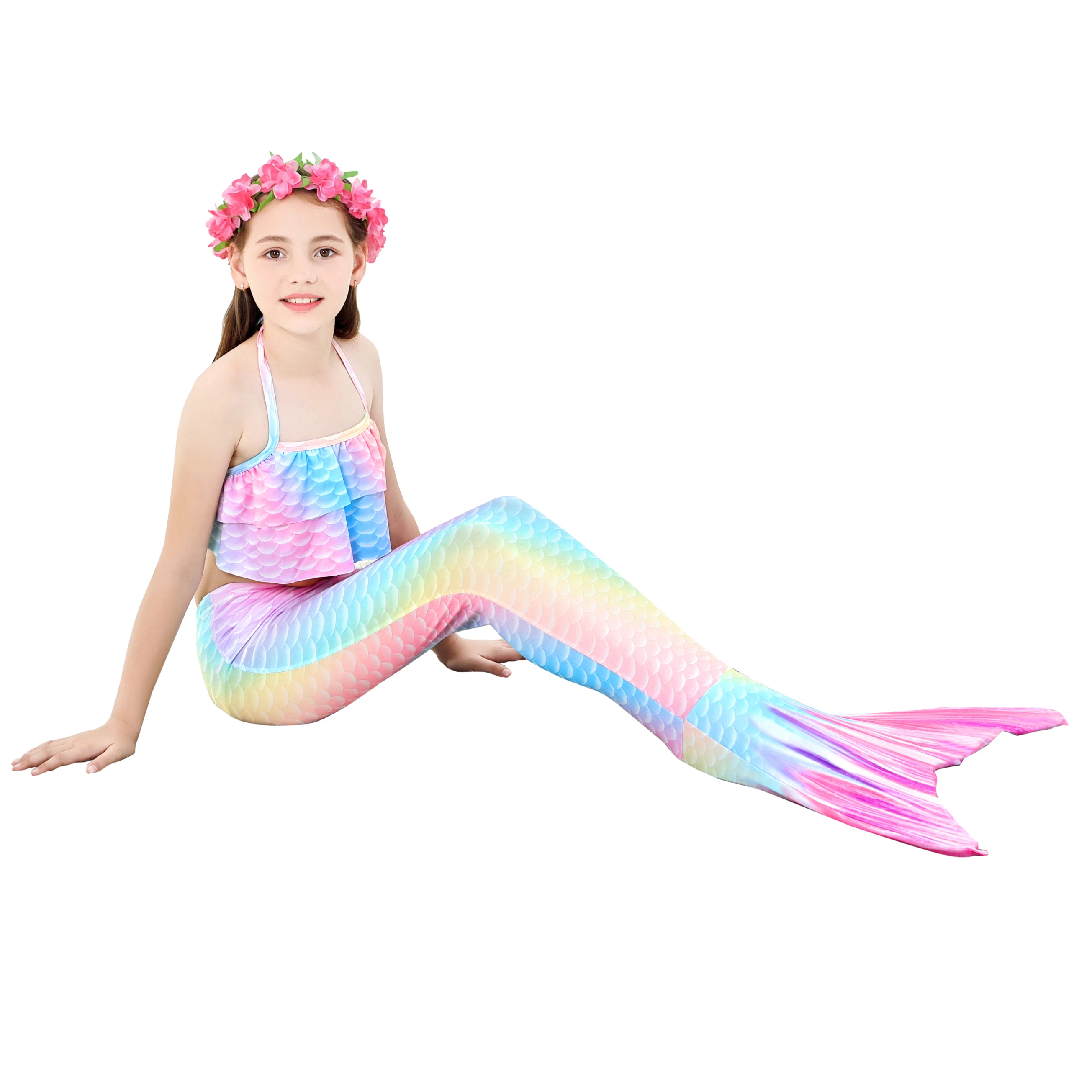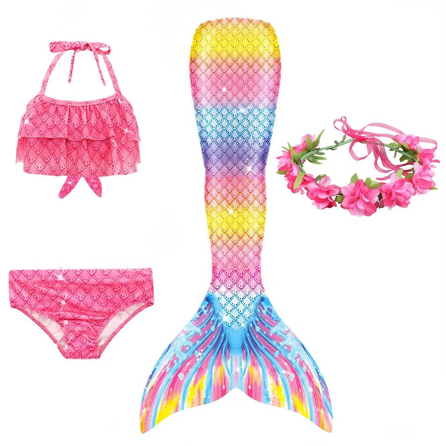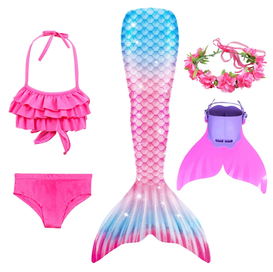 Детский костюм Русалочки, праздничный купальник принцессы с хвостом и моноластом для косплея, костюм для девочек на день рождения