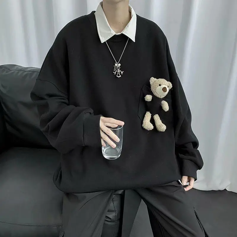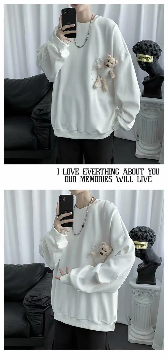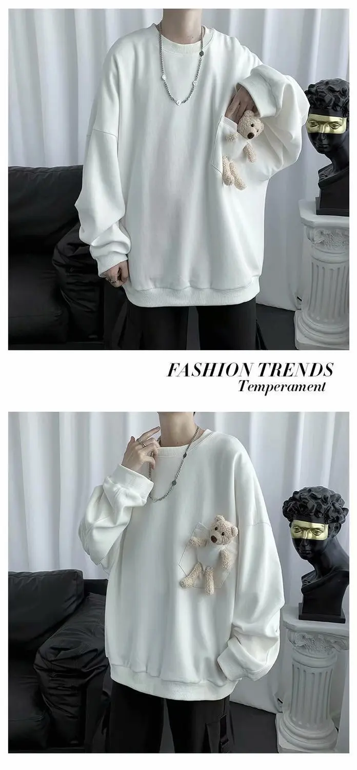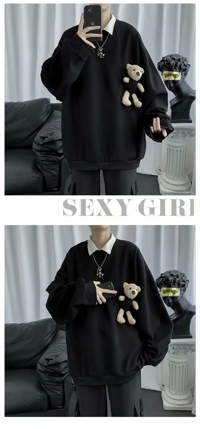 2020 Мужская модная Толстовка со съемным медведем, хлопковая Повседневная Толстовка, мужские пуловеры с круглым вырезом, уличная одежда, свободная куртка, S-XL