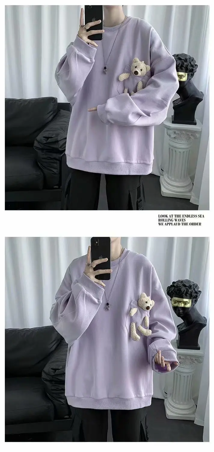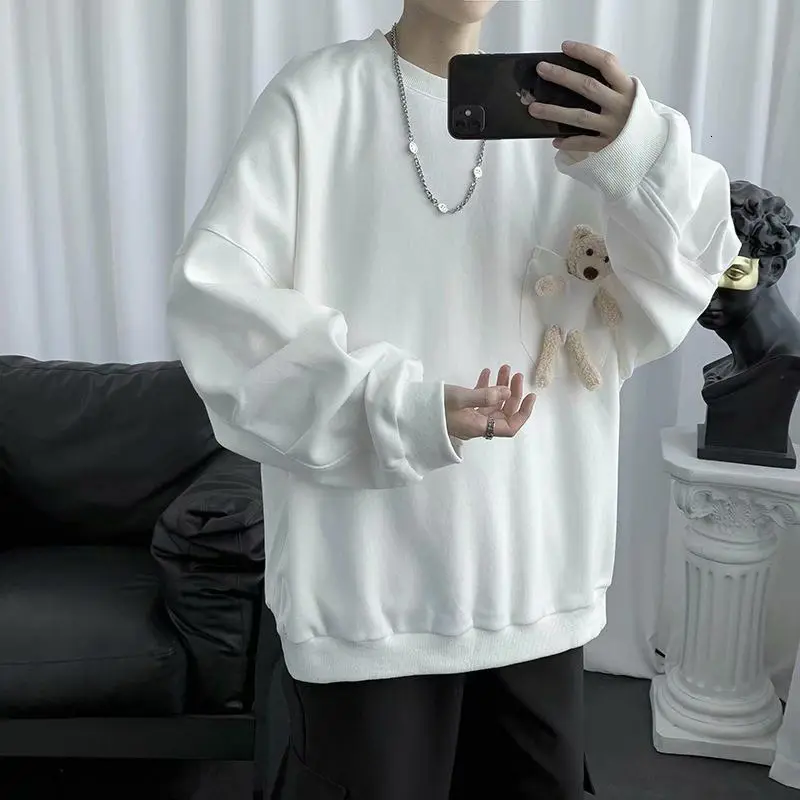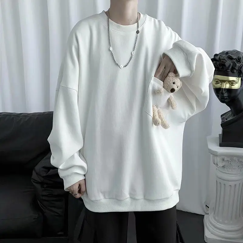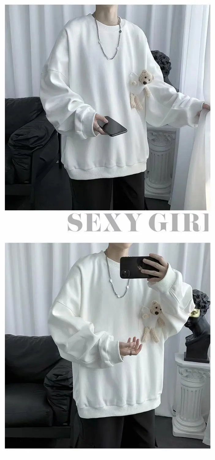 2020 Мужская модная Толстовка со съемным медведем, хлопковая Повседневная Толстовка, мужские пуловеры с круглым вырезом, уличная одежда, свободная куртка, S-XL