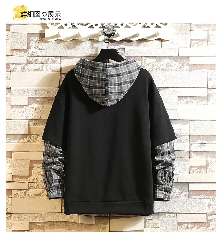 Осень-весна 2022, черные толстовки в стиле пэчворк, мужской стиль, Повседневный пуловер в стиле панк, уличная одежда