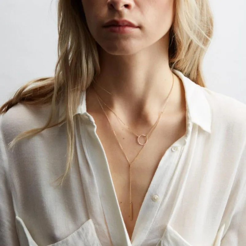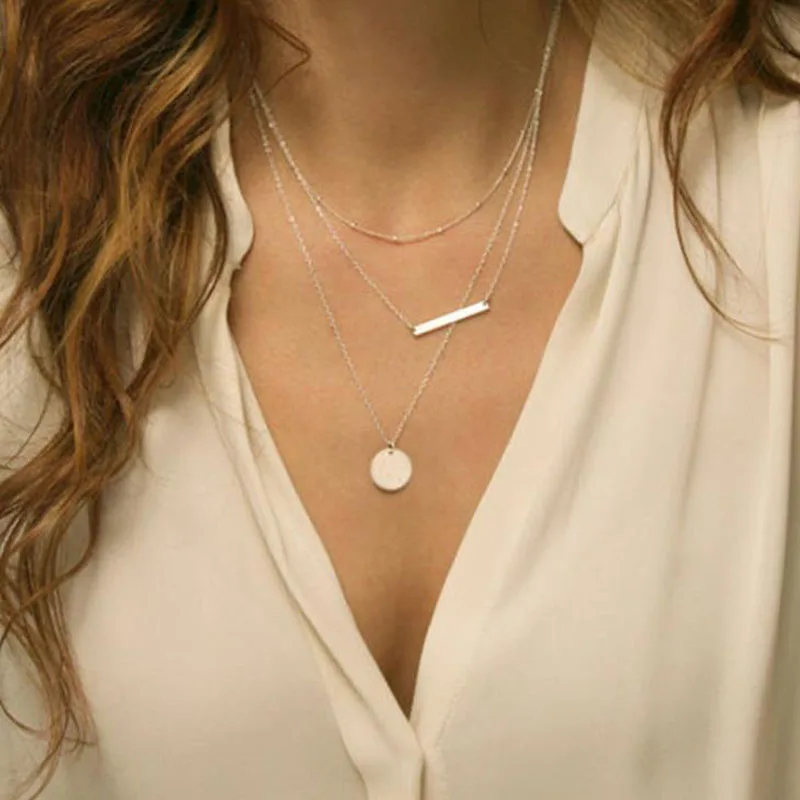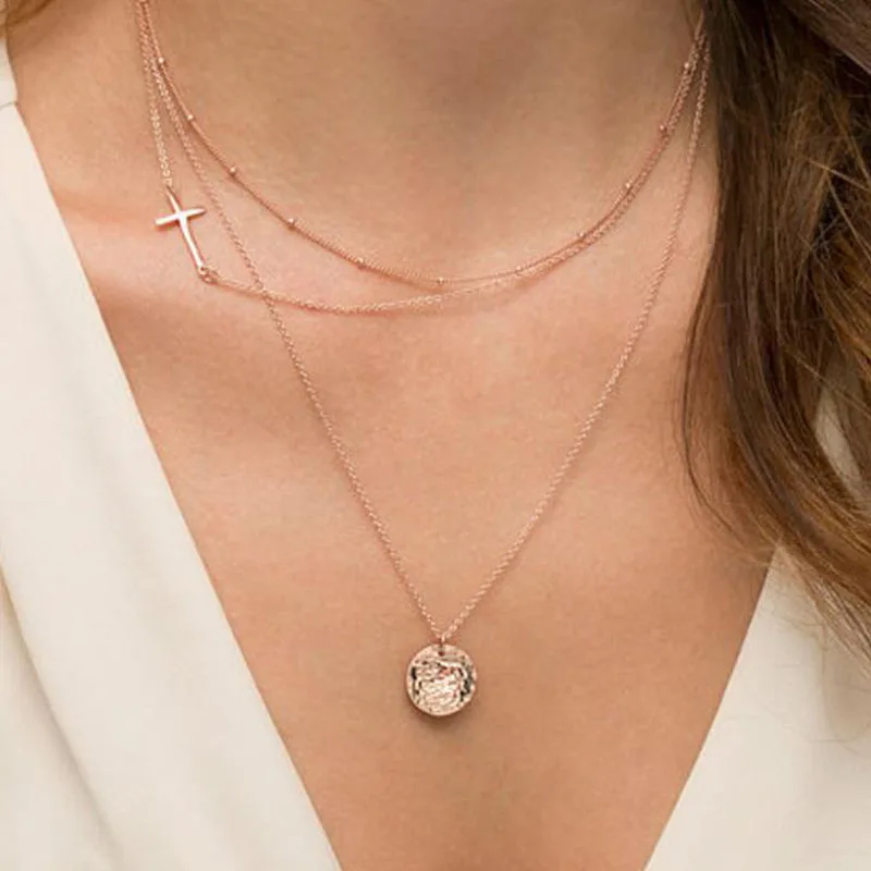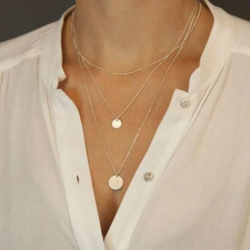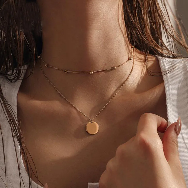 Многослойное ожерелье с подвеской в виде золотой монеты для женщин, простое Новое модное ожерелье-чокер, колье на шею, женское ювелирное изделие, подарок