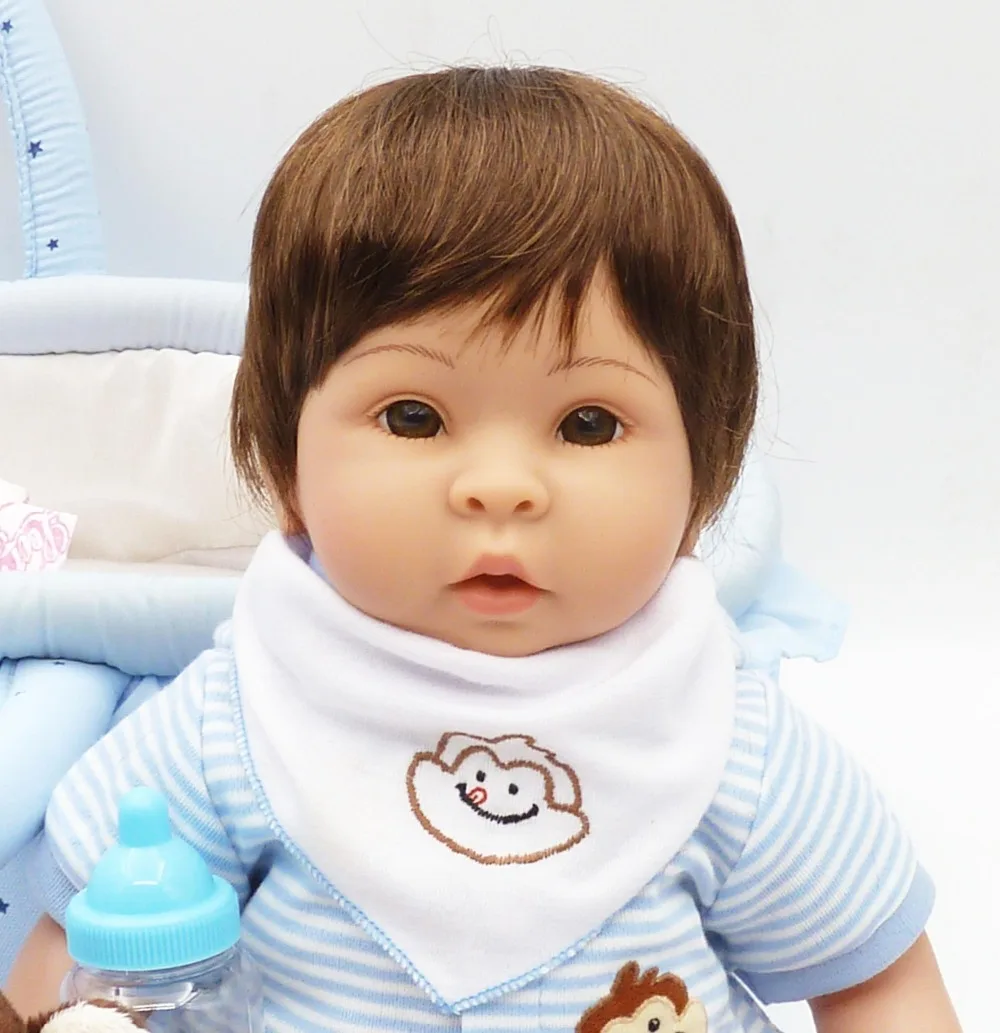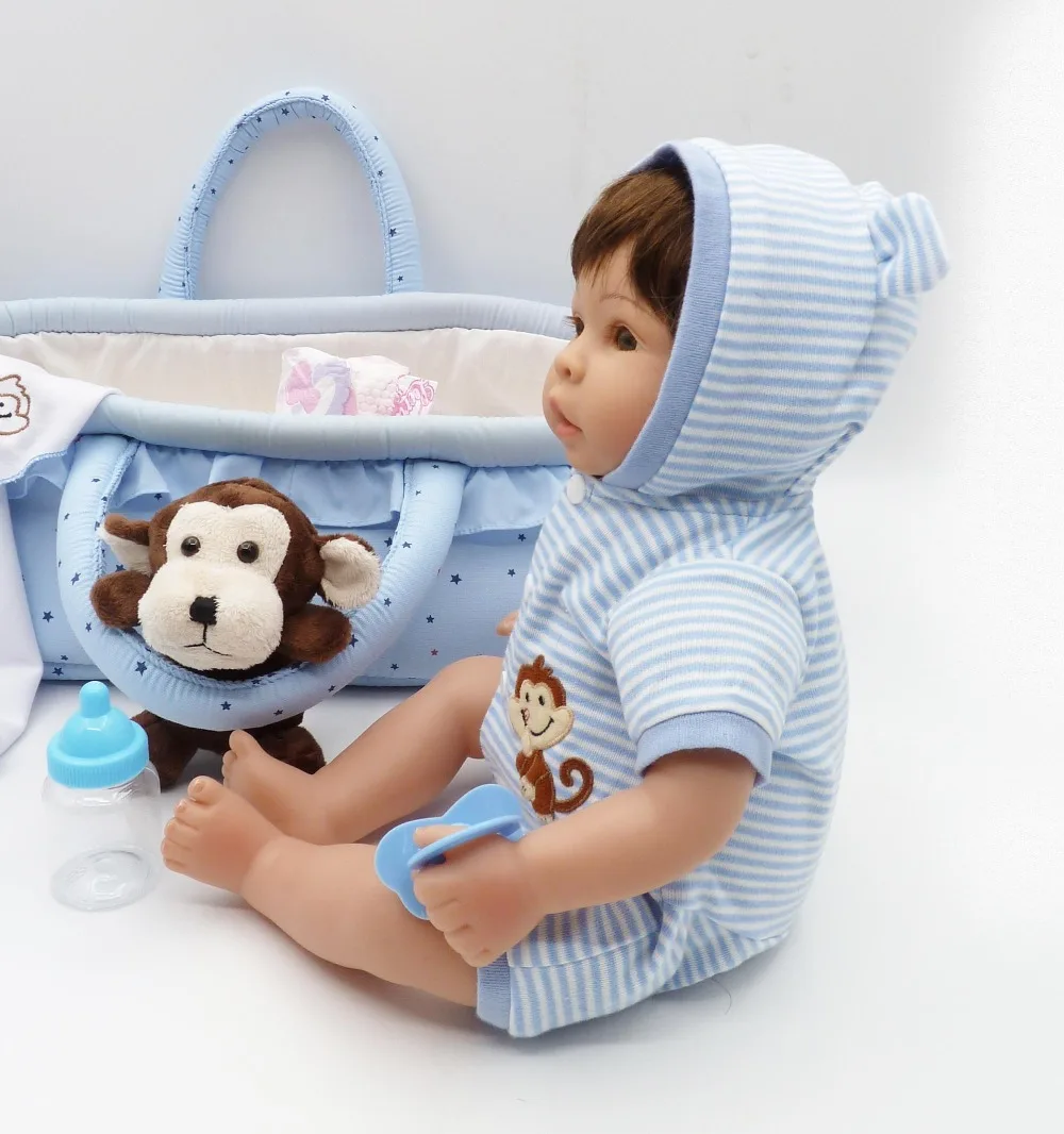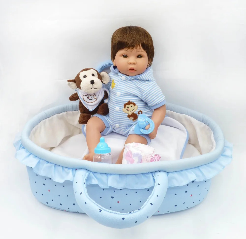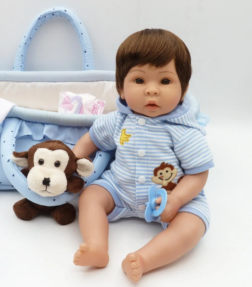 Куклы-младенцы Reborn 17 дюймов 41 см, силиконовые виниловые куклы-младенцы с синей корзиной, обезьянка, плюшевая кукла, реалистичный младенец, живая кукла для ребенка, подарок