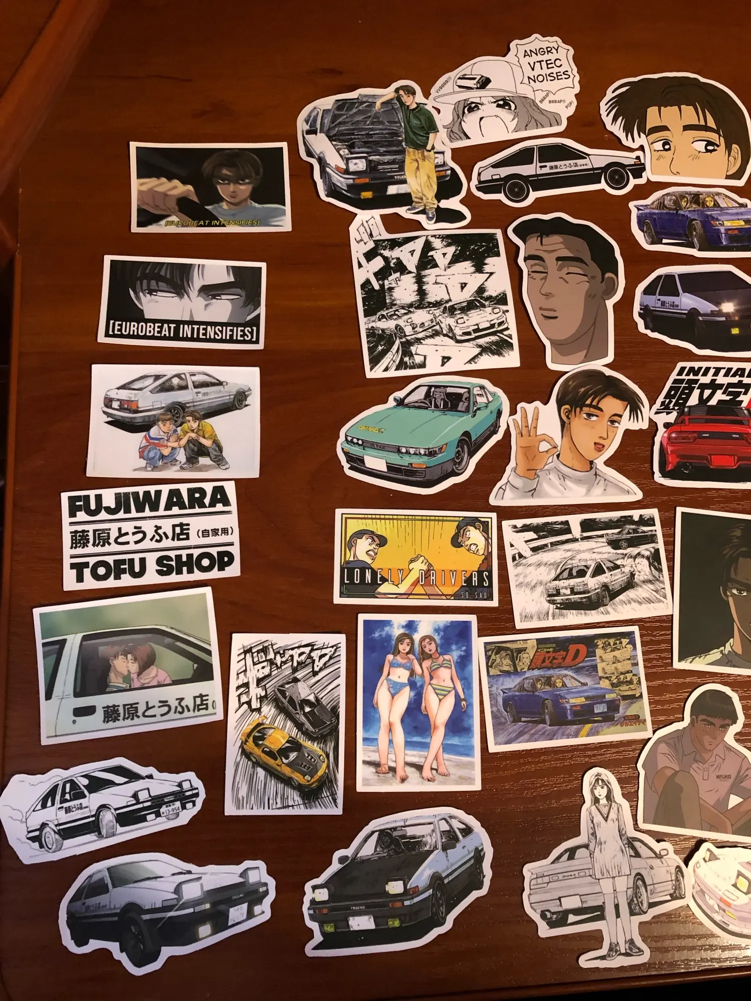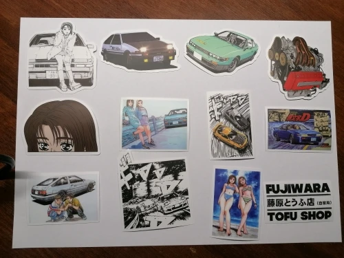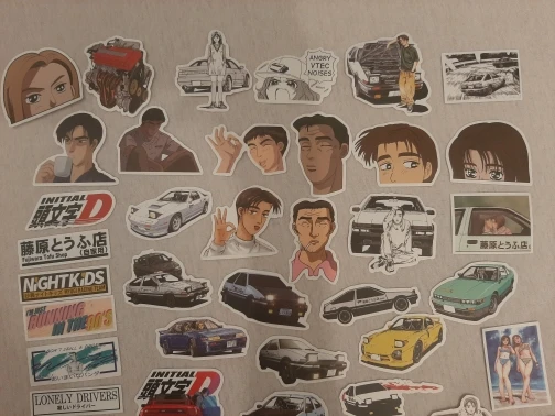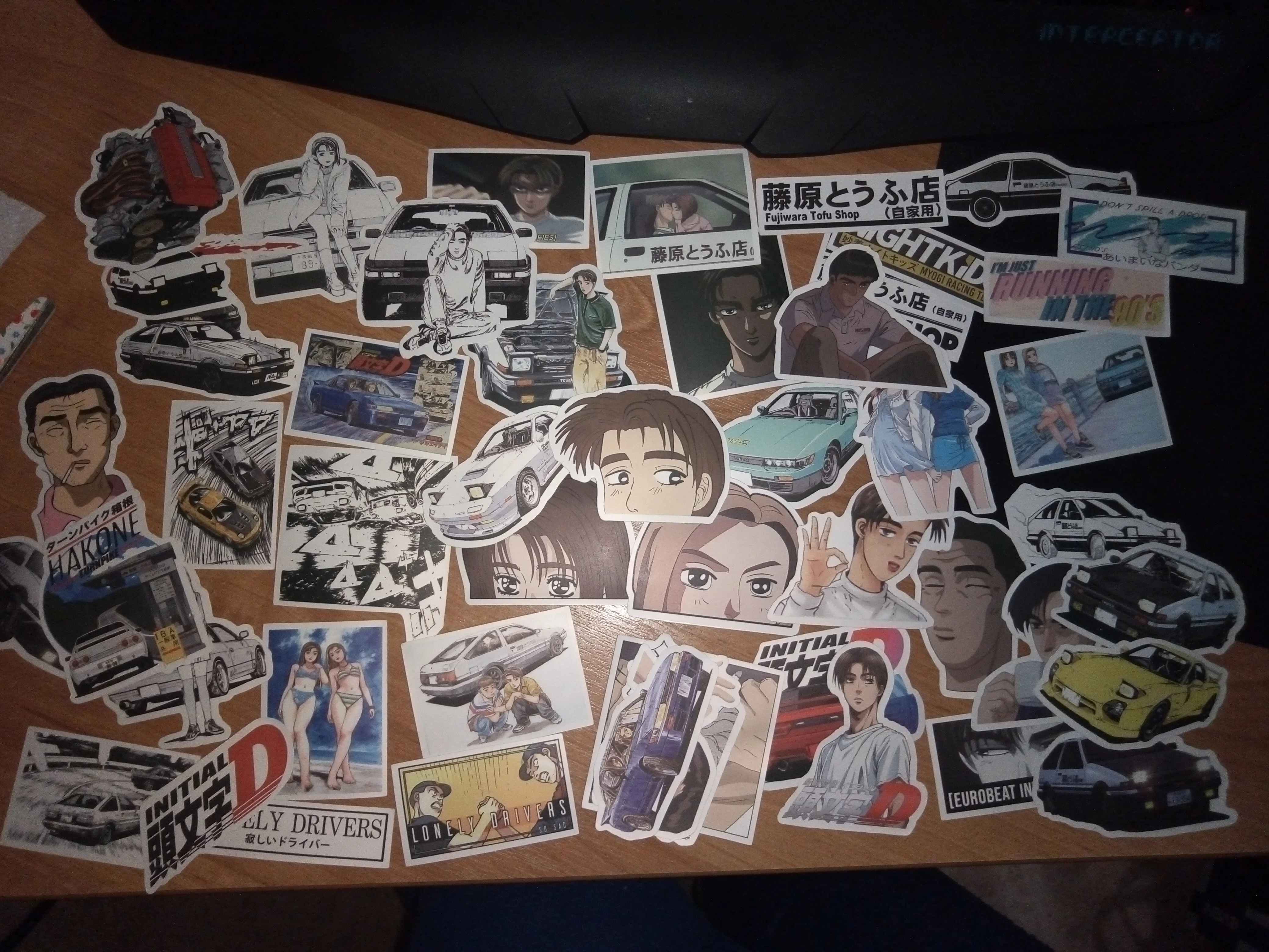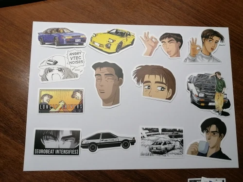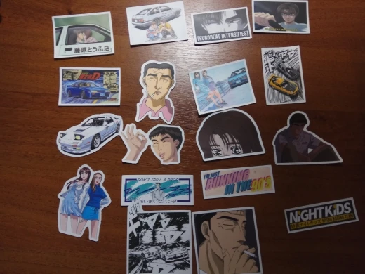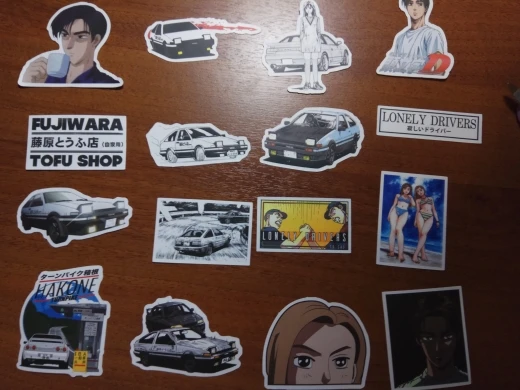 Стикер пак просто ШИКАРНЫЙ ! Нет таких стикеров , которые бы показались лишними или ты бы не знал куда они подойдут . Они ИЗУМИТЕЛЬНЫ , отличный стиль . К слову о качестве : Они матовые , на ощуп , вроде , должны держатся долго . Качество печати тоже высокое . В общем , хотите стикеры по Initial D - Заказывайте эти , не пожалеете