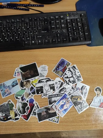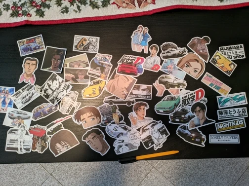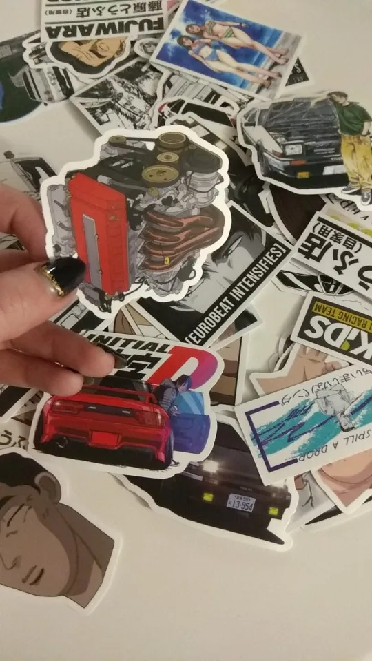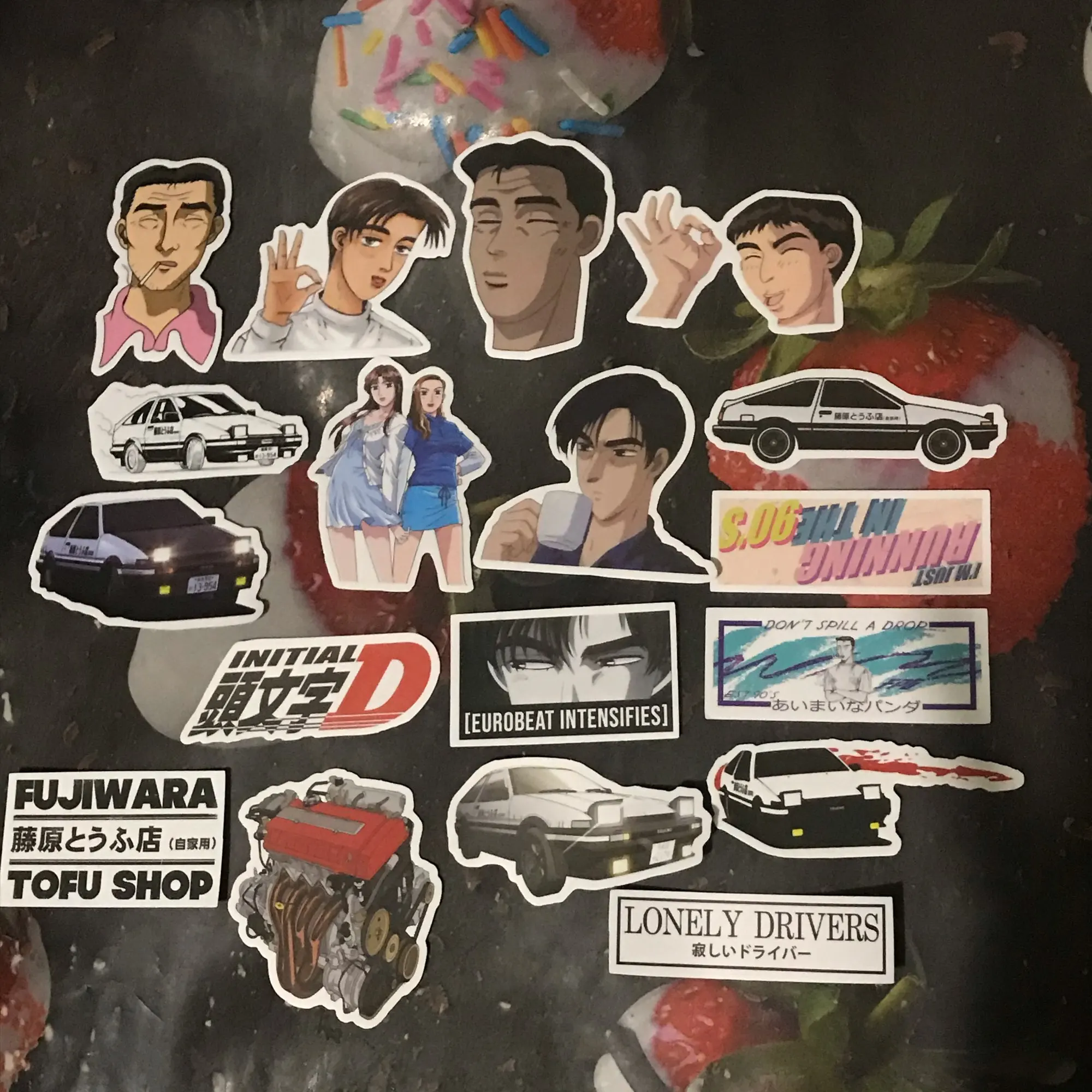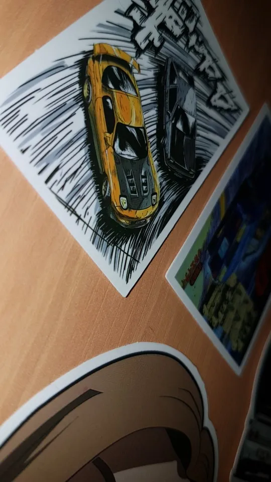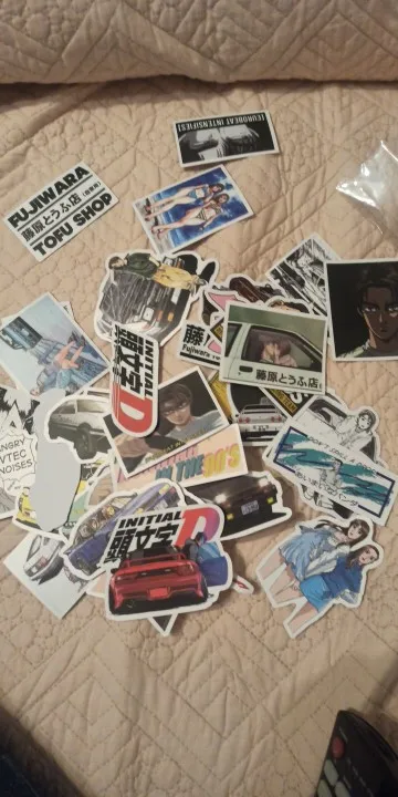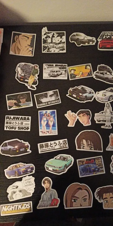 Стикер пак просто ШИКАРНЫЙ ! Нет таких стикеров , которые бы показались лишними или ты бы не знал куда они подойдут . Они ИЗУМИТЕЛЬНЫ , отличный стиль . К слову о качестве : Они матовые , на ощуп , вроде , должны держатся долго . Качество печати тоже высокое . В общем , хотите стикеры по Initial D - Заказывайте эти , не пожалеете