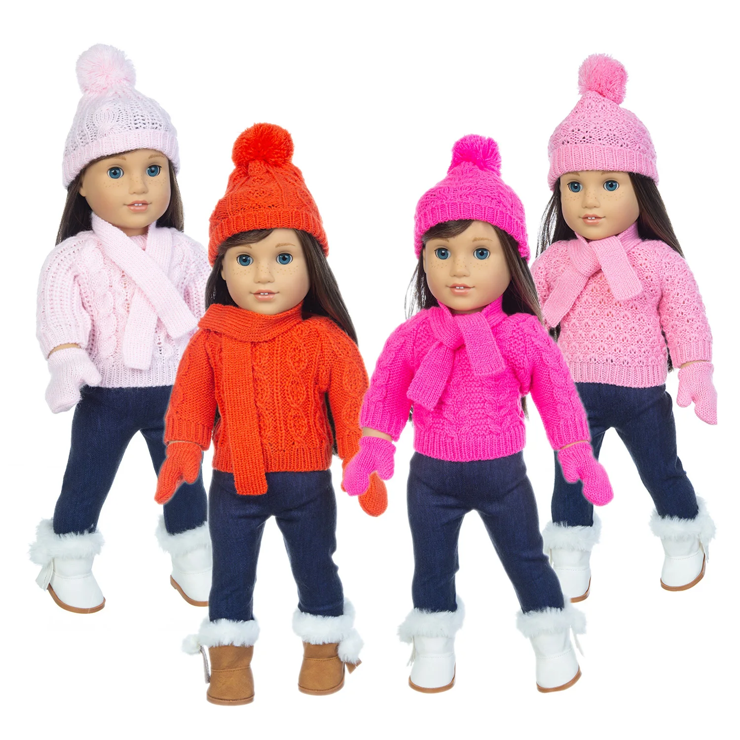 Свитер + головной убор + повязка на голову + перчатки 1 Комплект одежды подходит для 18 "американская девочка кукла Александра, девушки куклы