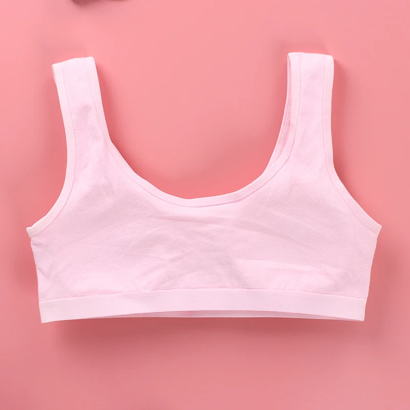 Однотонный бюстгальтер из хлопка и спандекса для подростков, жилет для девочек От 8 до 18 лет, нижнее белье для подростков, тренировочные топы с подкладками для груди