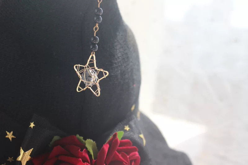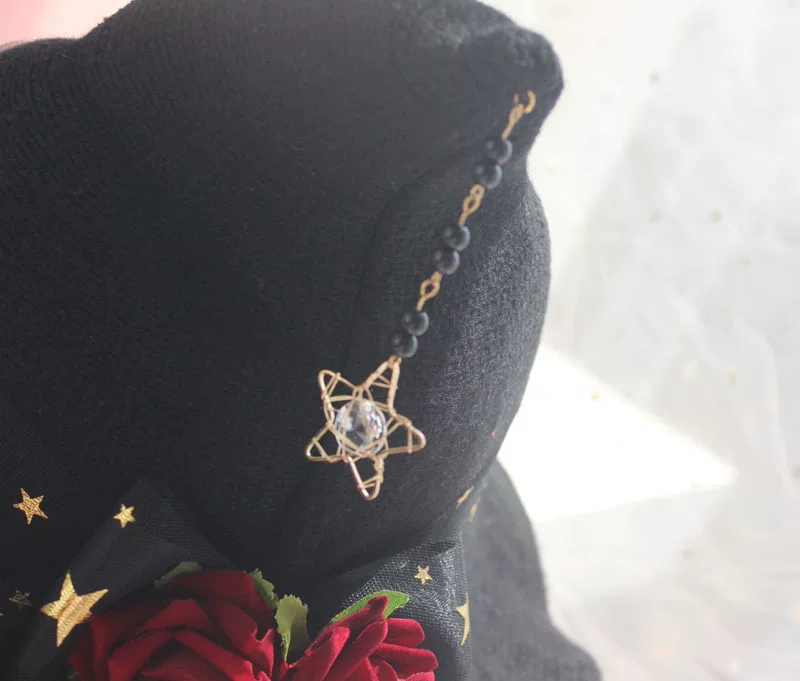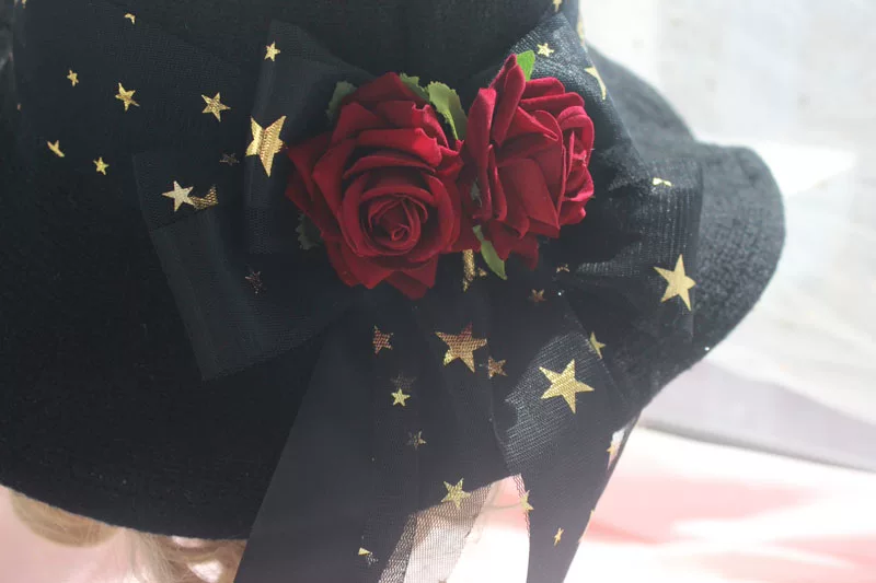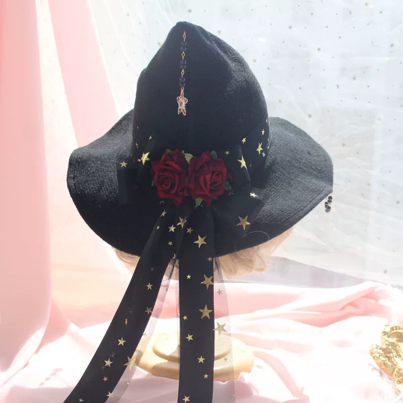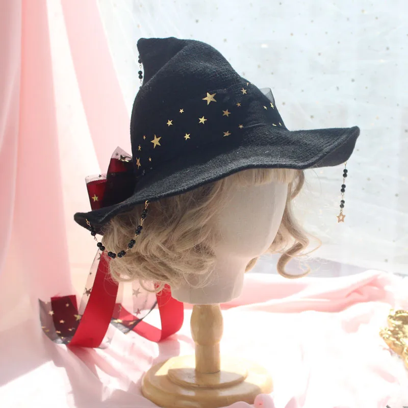 Винтаж звезда Magic Girl Готический, колдун шляпа в стиле "Лолита" на Хэллоуин с капюшоном в виде шляпы ведьмы аксессуары реквизит бисерная цепь с розовым бантом вечерние остроконечные Кепки