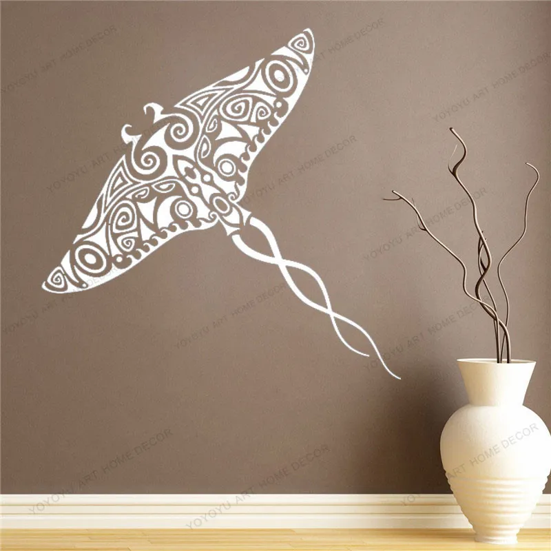 Океан морских животных ската виниловые наклейки на стены Манта домашний декор наклейка в форме летучей мыши Ray росписи маори орнамент съемные обои CX515