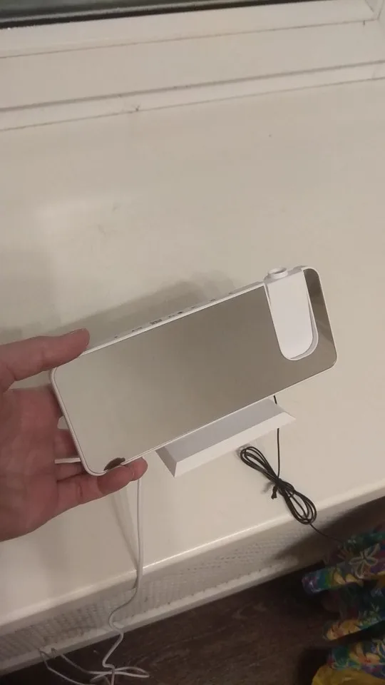 Выглядит очень стильно, выбирал сестре ради проектора. Проектор хороший если ставить его не больше чем на 1,5 - 2 метра от потолка. Покрытие зеркальное, поэтому можно отключить дисплей и пользоваться как зеркалом. Радио не пользовался. Пришёл хорошо упакованный. За свои деньги вполне хороший вариант. Советую к покупке.