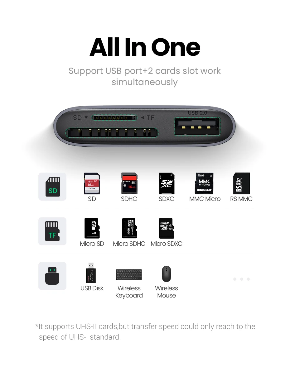 Ридер работает стабильно, активны параллельно оба слота SD и TF (до ~85Мб\сек), USB порт вполне рабочий c отдельным контроллером (~40Мб\сек). Продавец шлёт липучку\органайзер в подарок, а доставка как всегда быстрая и с отслеживанием. Рекомендую и магазин и продукцию.