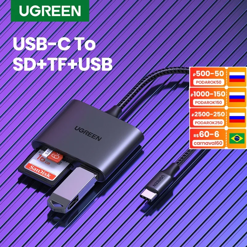 UGREEN USB C кардридер Тип C к USB SD Micro SD кардридер для iPad ноутбука аксессуары карта памяти адаптер SD кардридер