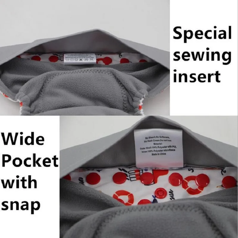 -Внешний слой:Водонепроницаемый с принтом PUL/TPU -Внутренний слой:Внутренний бамбуковый угольШитье3 слояВнутренняя вставка из микрофибры