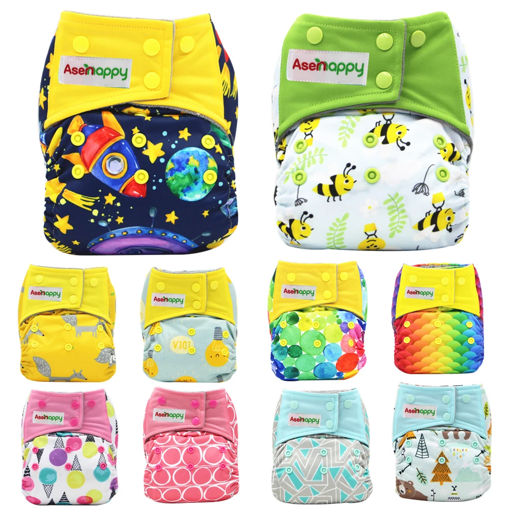 Детские тканевые подгузники AIO, подгузники из бамбукового угля, универсальные подгузники, Прошитые 3-слойные микрофлисовые подгузники внутри, многоразовые подгузники, оптовая продажа