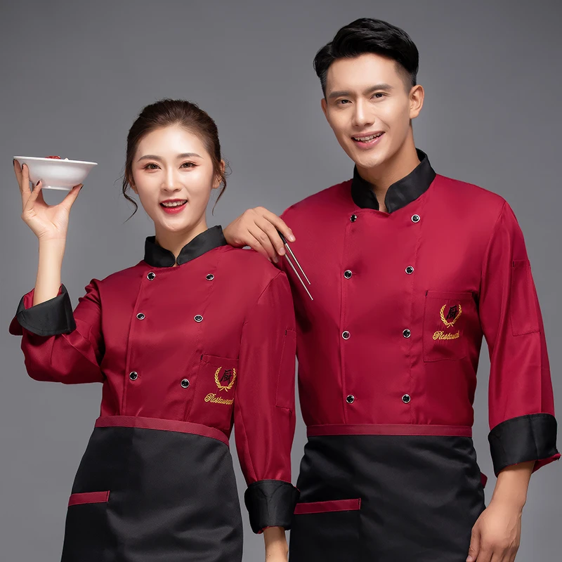 Унисекс двубортная Униформа шеф-повара с длинным рукавом Куртка для готовки выпечки фартук шляпа для кафе ресторана отеля официанта Рабочая куртка