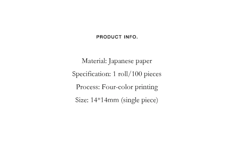 Материал: японская бумагаСпецификация: 1 рулон/100 штукРазмер: 14*14 мм (одна штука)