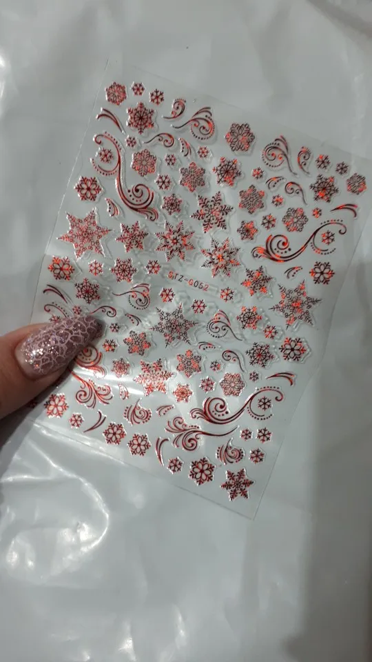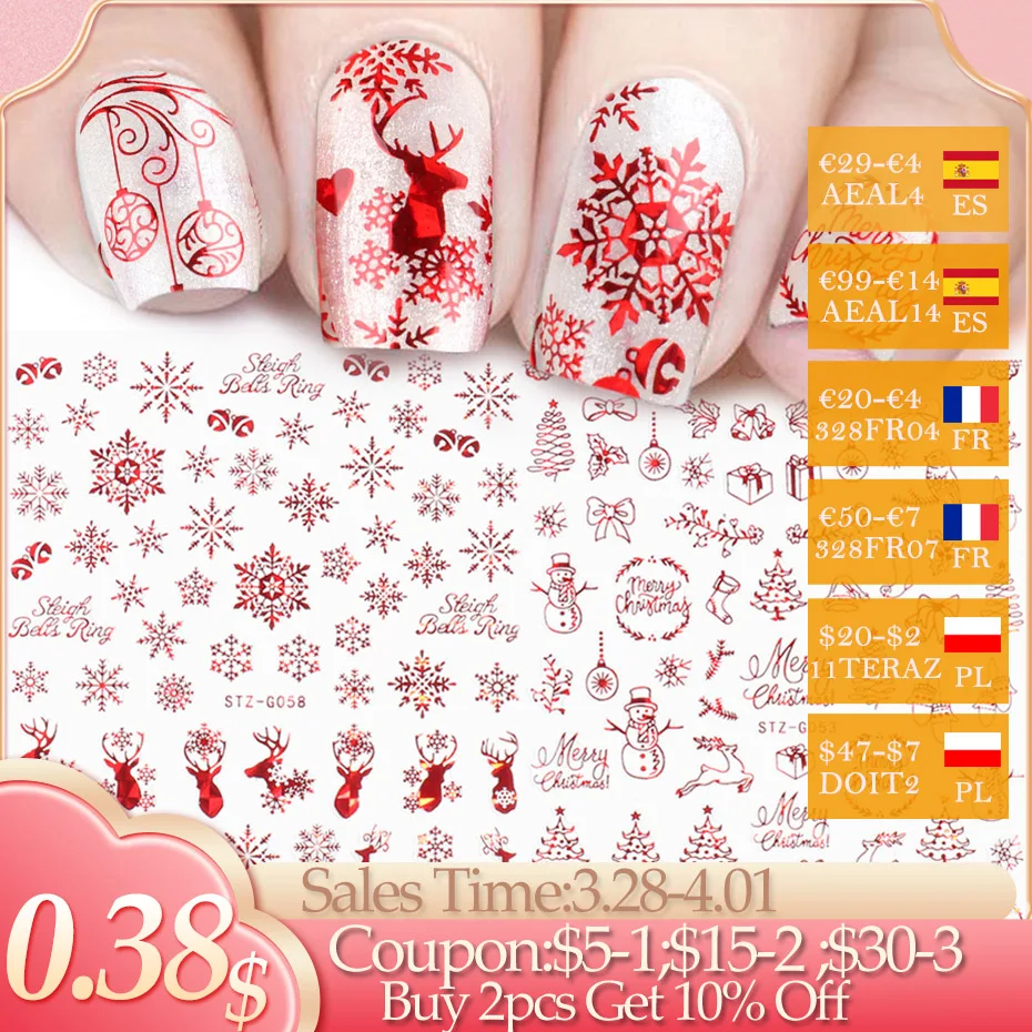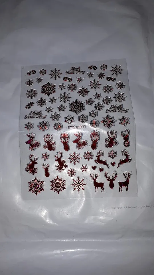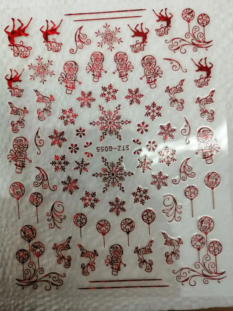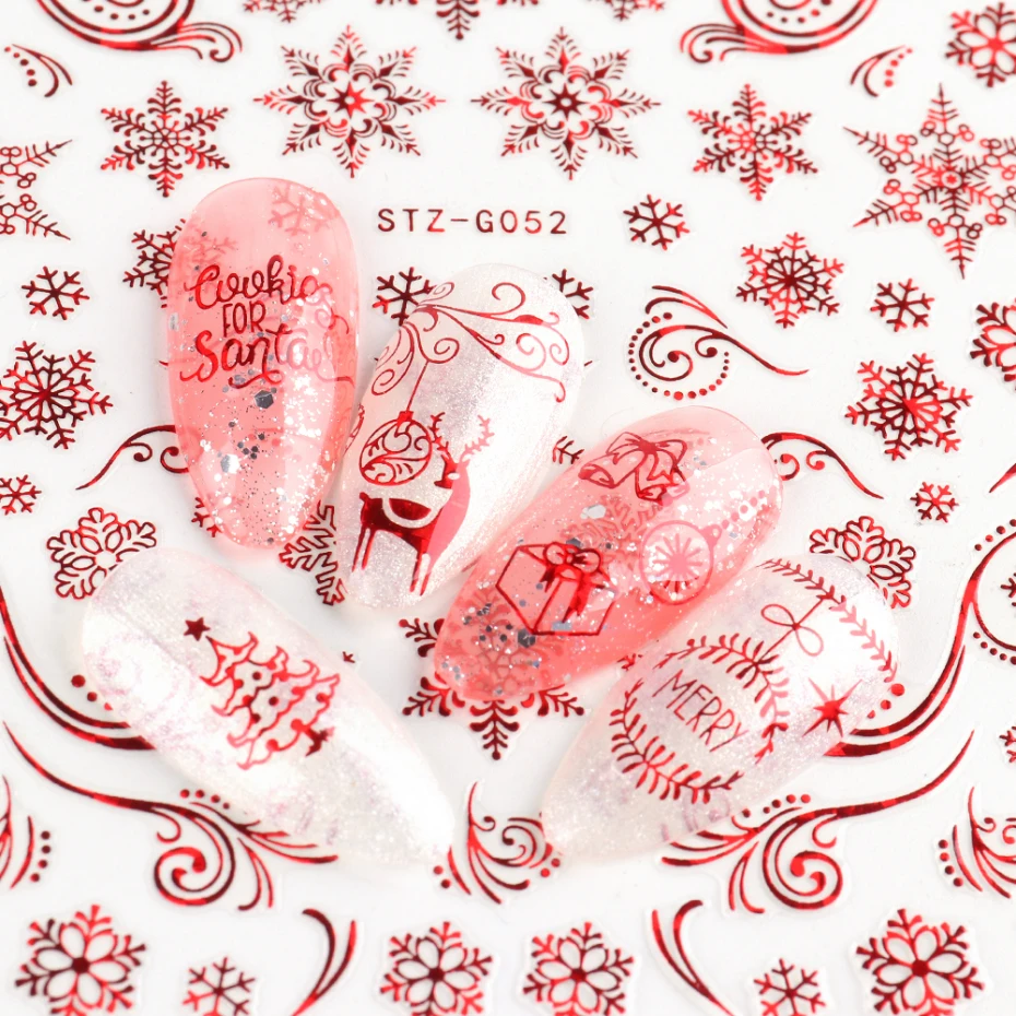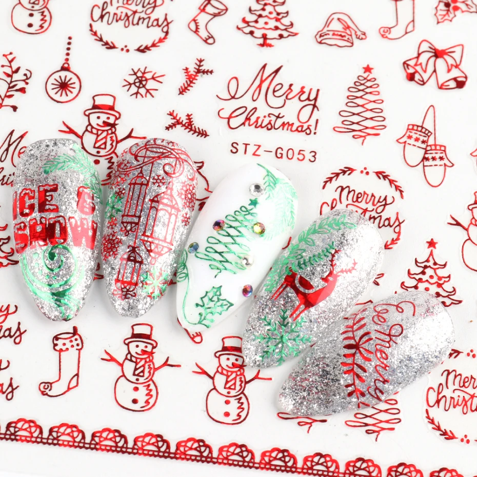 Объемная голографическая наклейка Рождественская наклейка для ногтей, красная, сияющая, блестящая Снежинка, с изображением лося, деда мороза, зима, SASTZG050-058