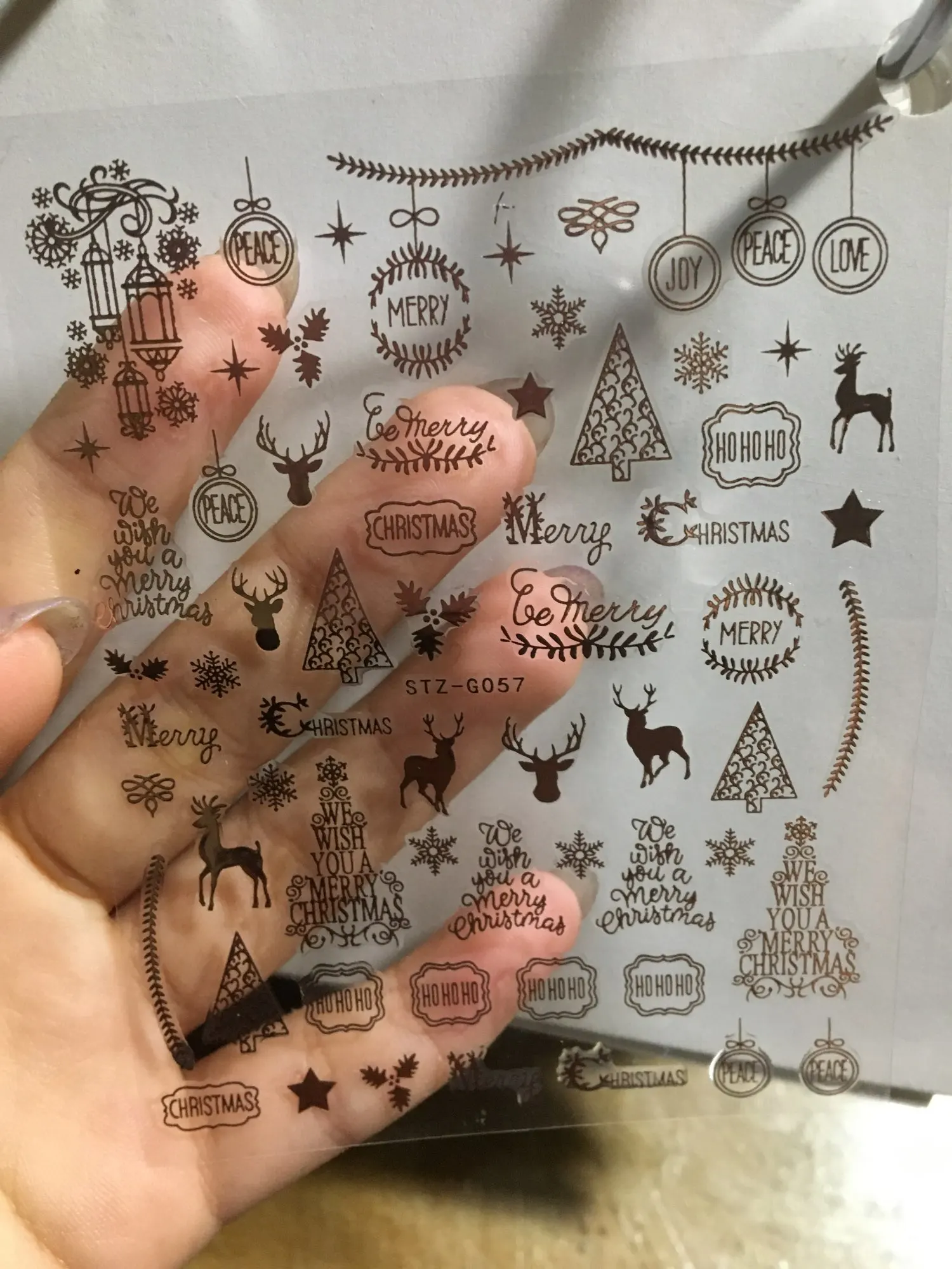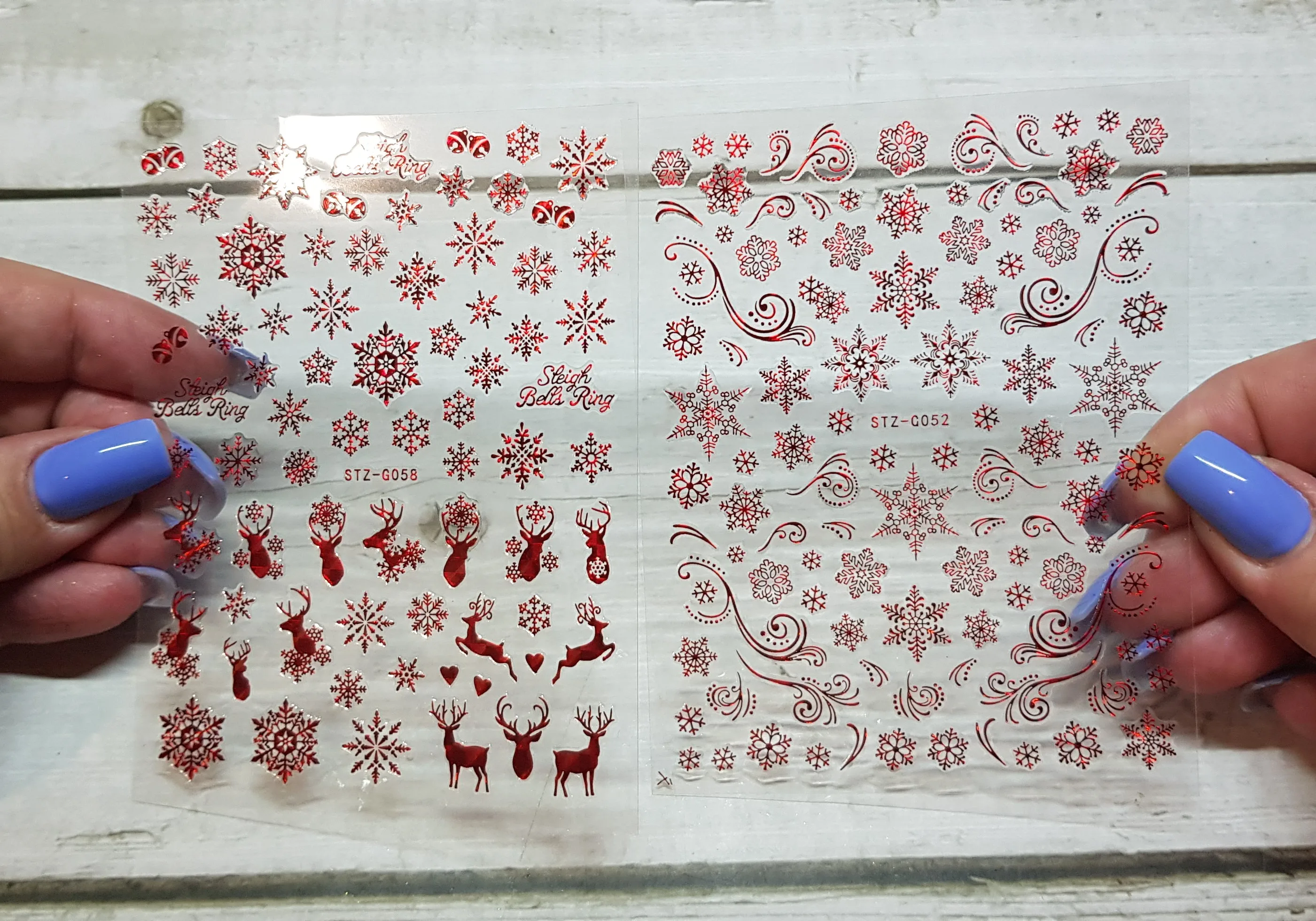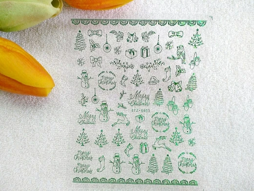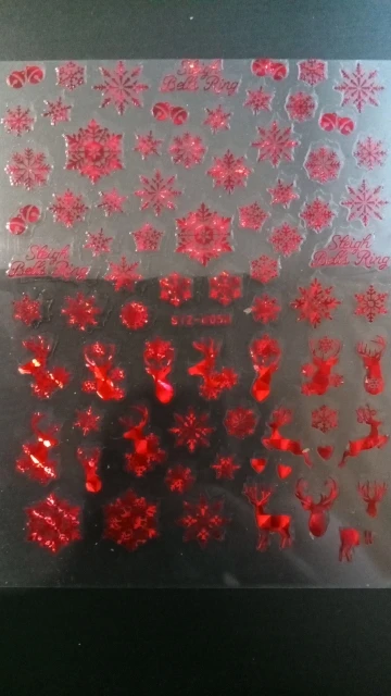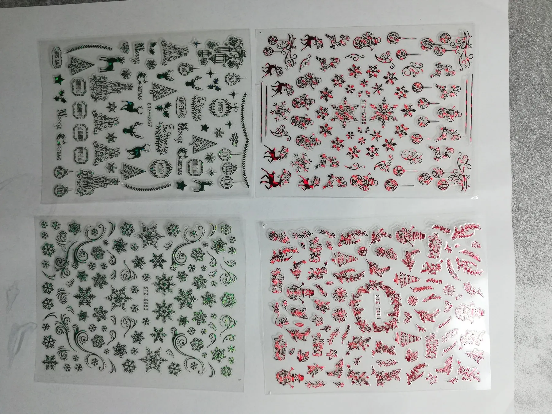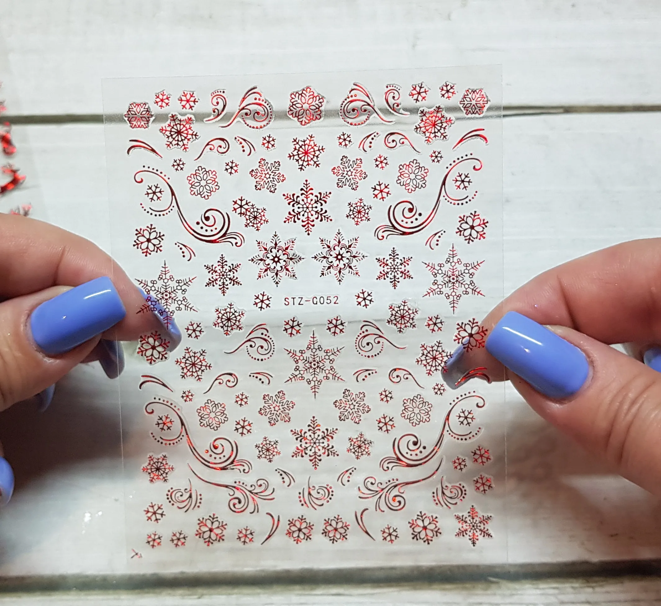 Объемная голографическая наклейка Рождественская наклейка для ногтей, красная, сияющая, блестящая Снежинка, с изображением лося, деда мороза, зима, SASTZG050-058