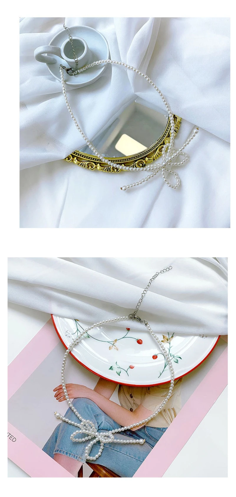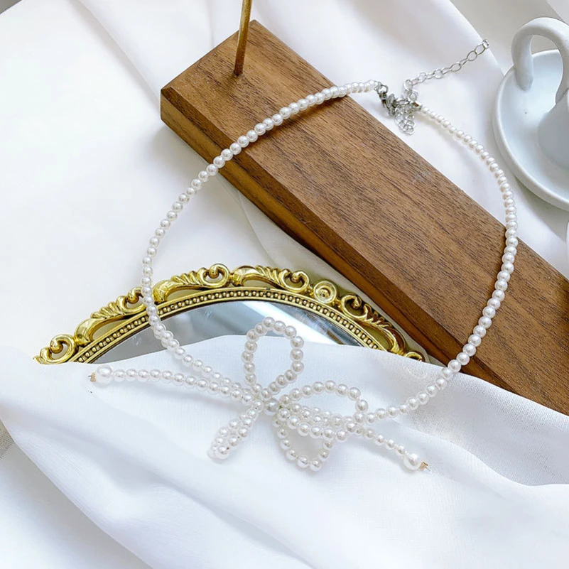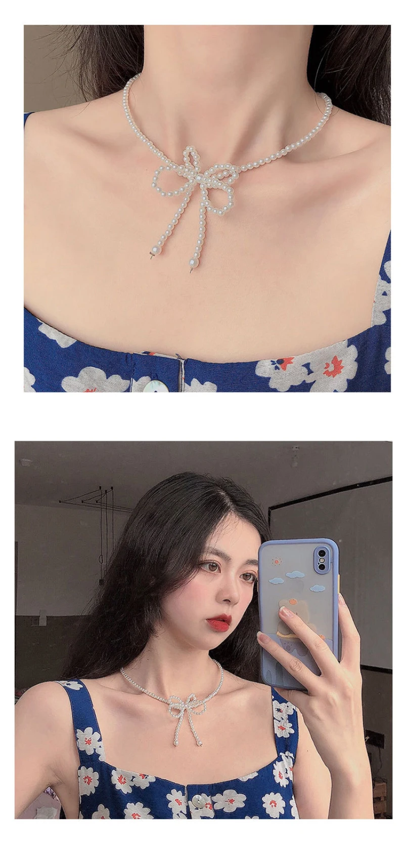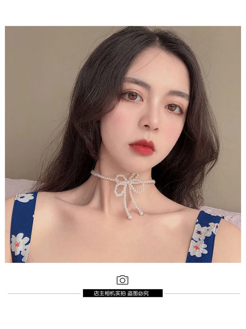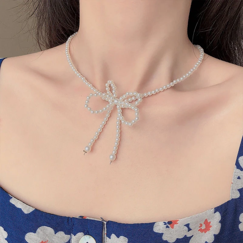 Женская цепочка с бусинами и искусственным жемчугом, ожерелье-чокер из сплава с бантом, аксессуар для шеи, 2020