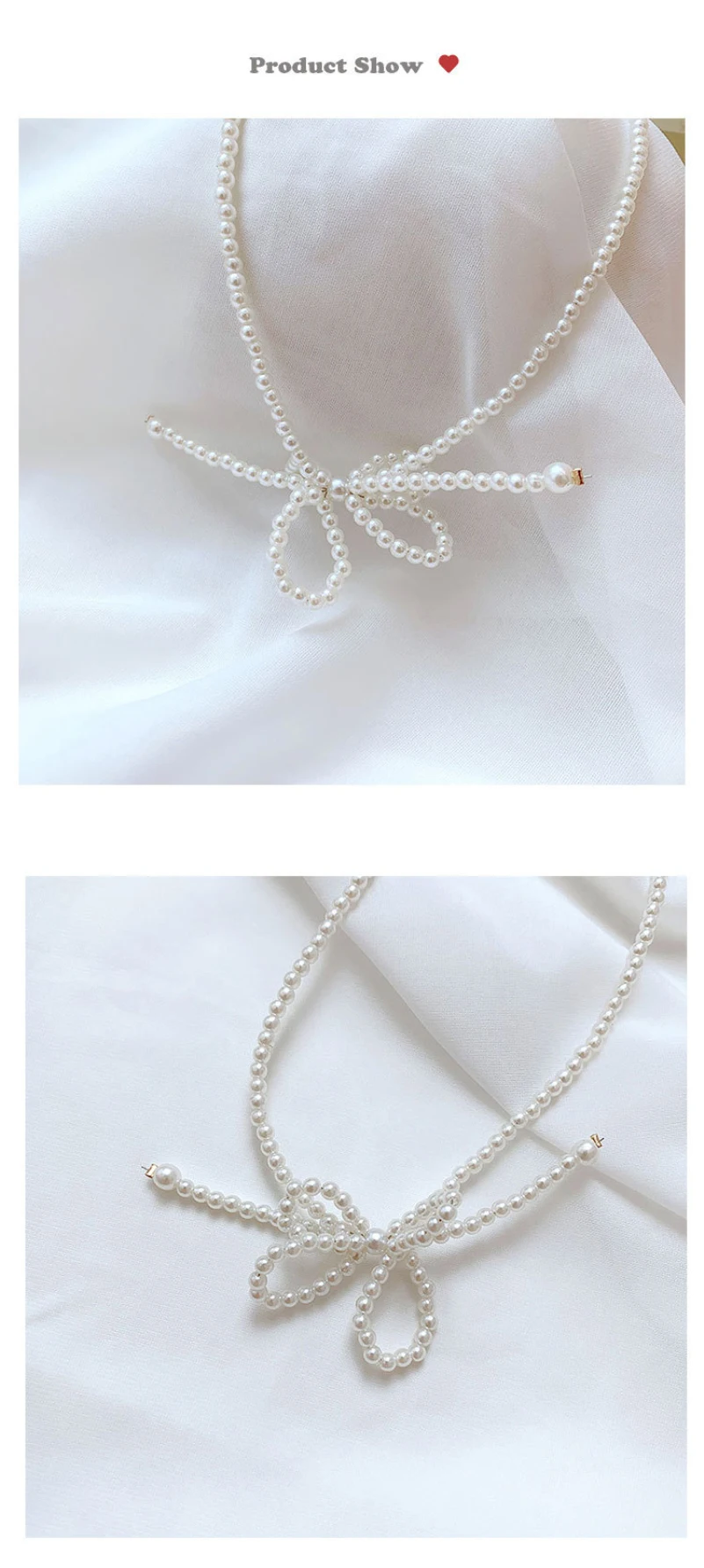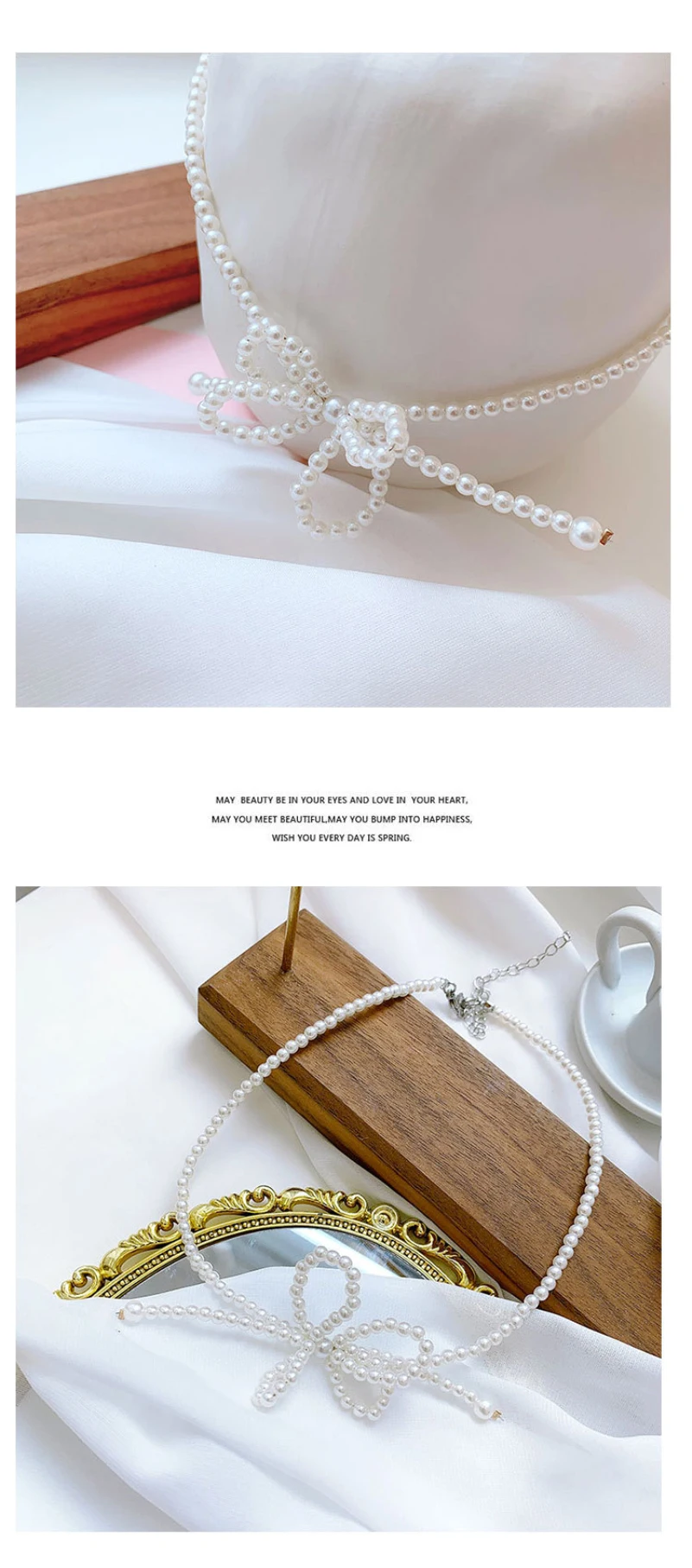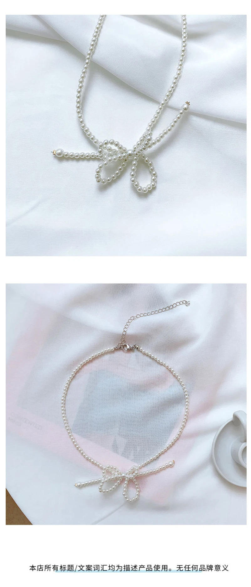 Женская цепочка с бусинами и искусственным жемчугом, ожерелье-чокер из сплава с бантом, аксессуар для шеи, 2020