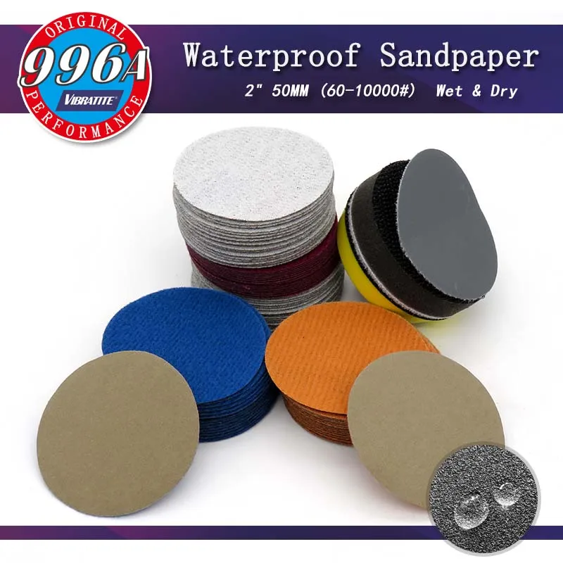 Оптовая продажа, 2-Дюймовая Водонепроницаемая наждачная бумага, петля с крючком, силиконовый карбид, 60-10000 Грит, влажный сухой шлифовальный диск