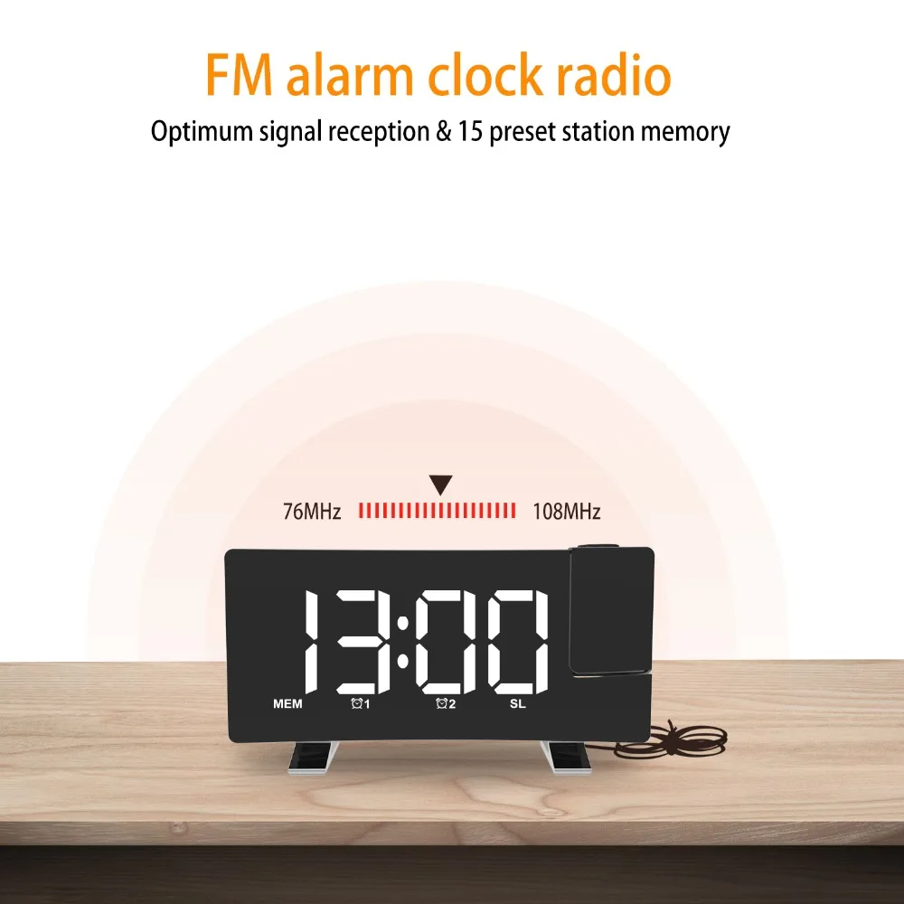 Цифровой проектор Будильник 87,5-108 МГц FM-радио светодиодная электронная настольная функция повтора
