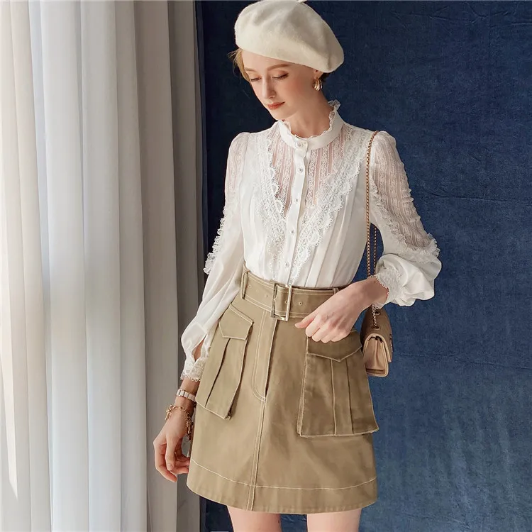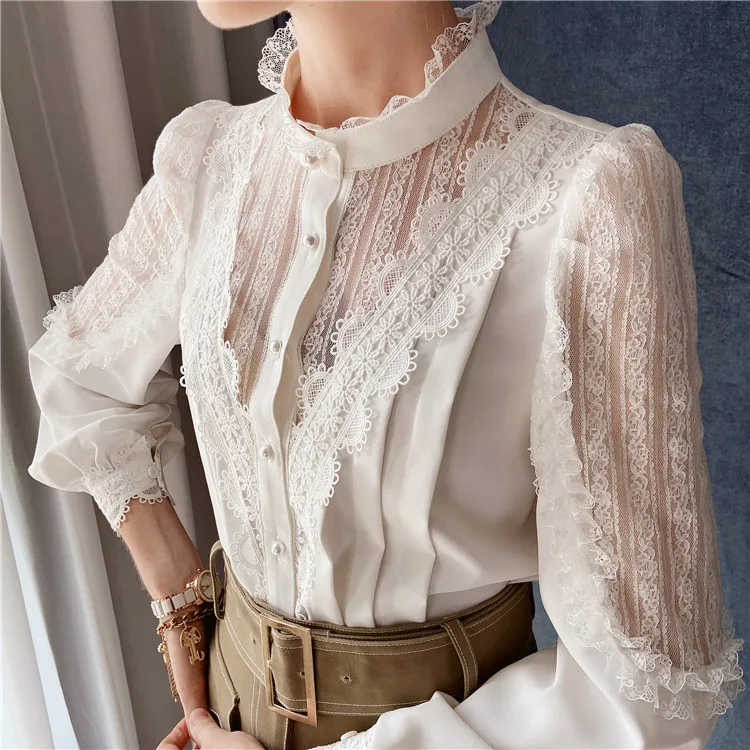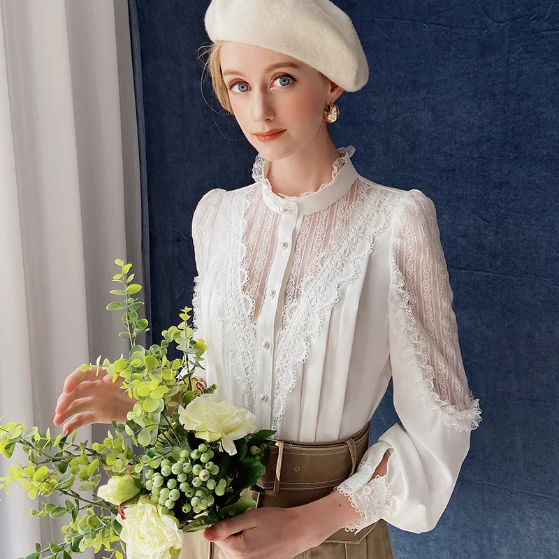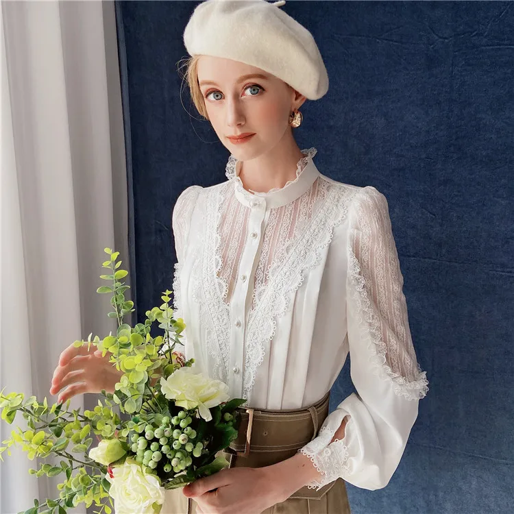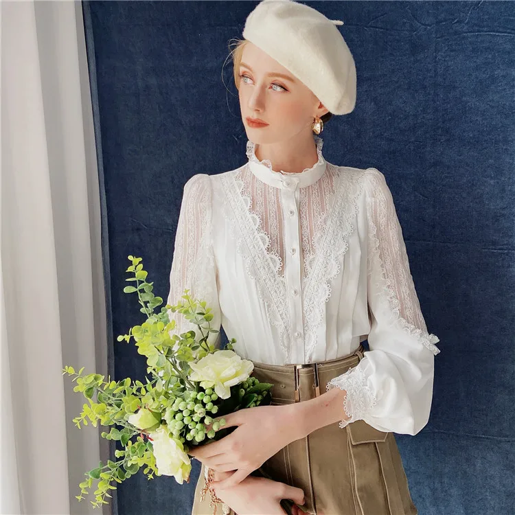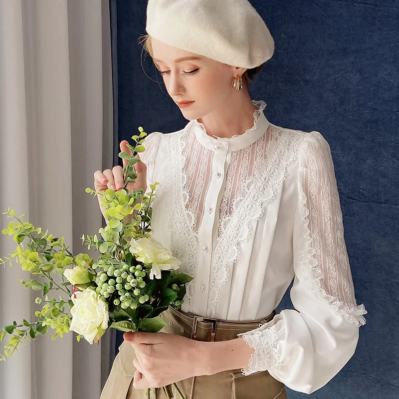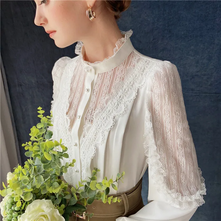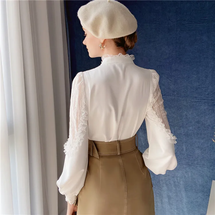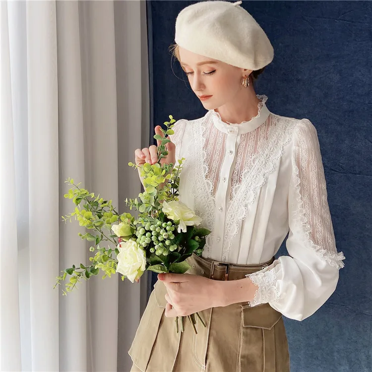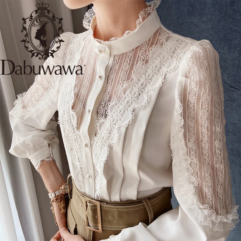 Женская блузка с аппликацией Dabuwawa, офисная блузка с рукавами-фонариками и стоячим воротником, DT1CST033